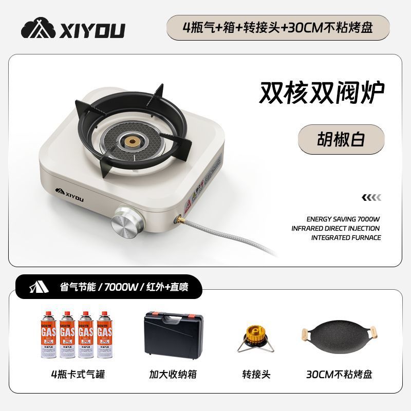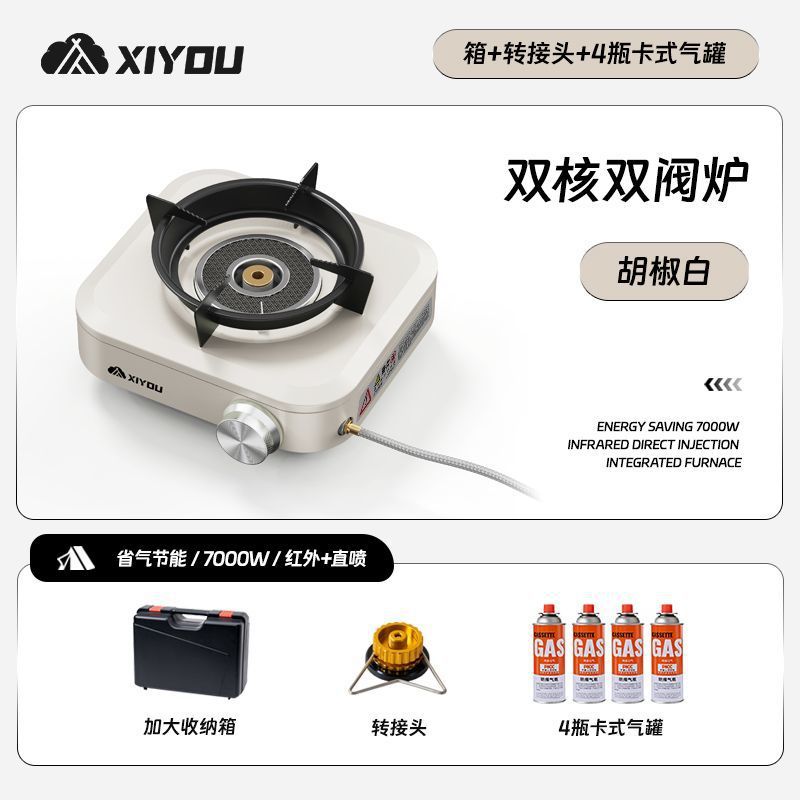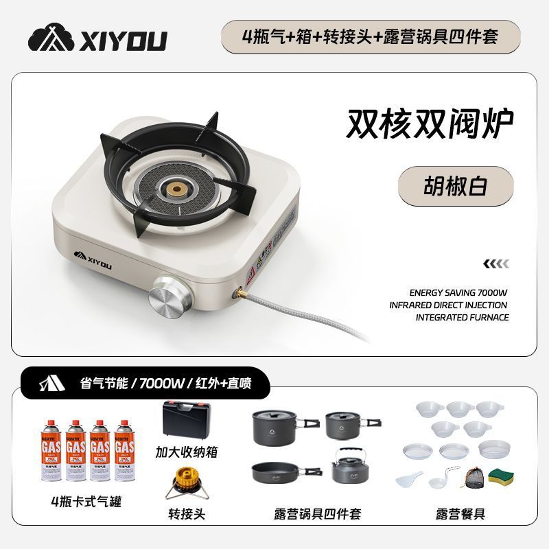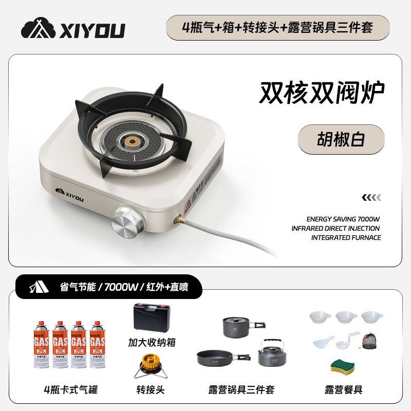 • [적외선 화로의 안정화 버전] - [업그레이드된 듀얼 코어 이중 밸브 화로] + 식기 무료 3종 세트 + 가스통 4개