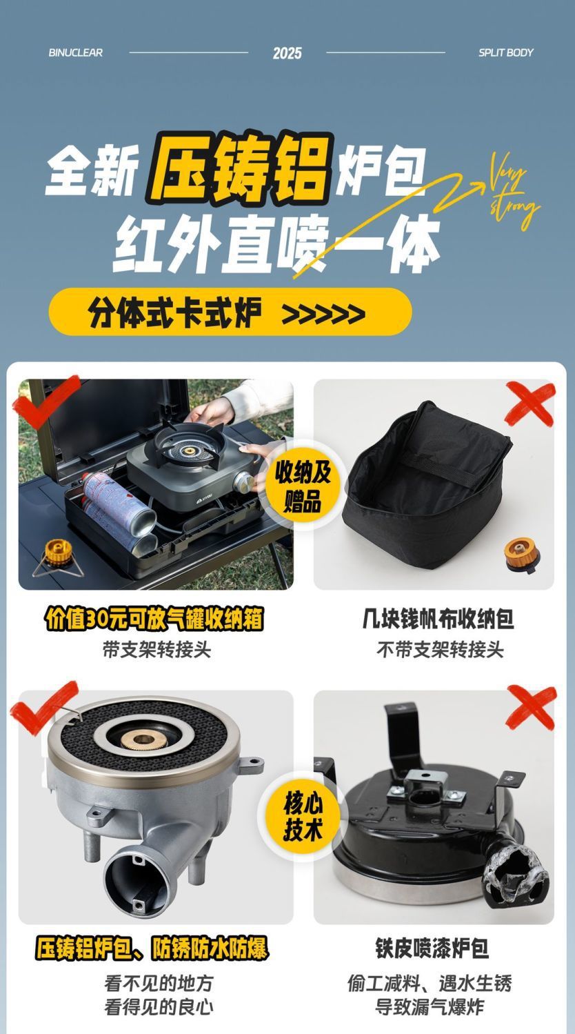 • [안정화 버전] 적외선 폭발 분할로 - [업그레이드된 듀얼 코어 더블 밸브로] + 식기 무료 3종 세트 + 가스통 4개
