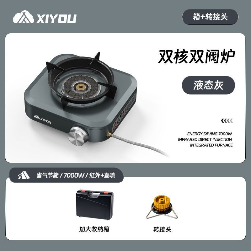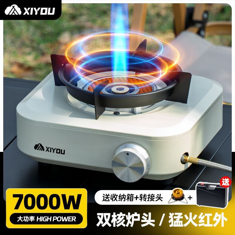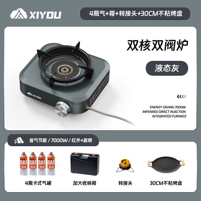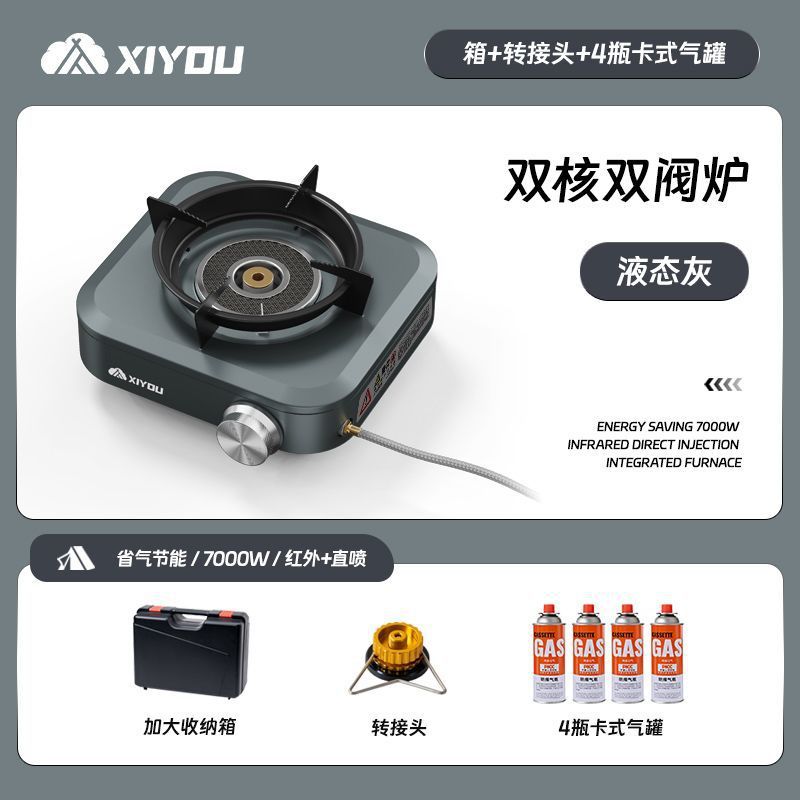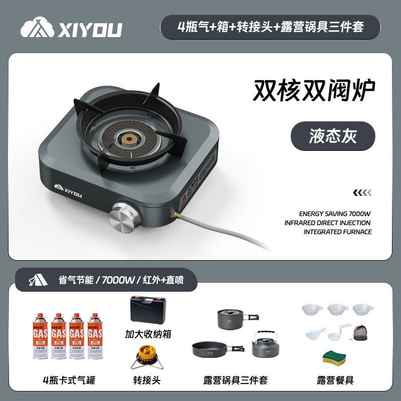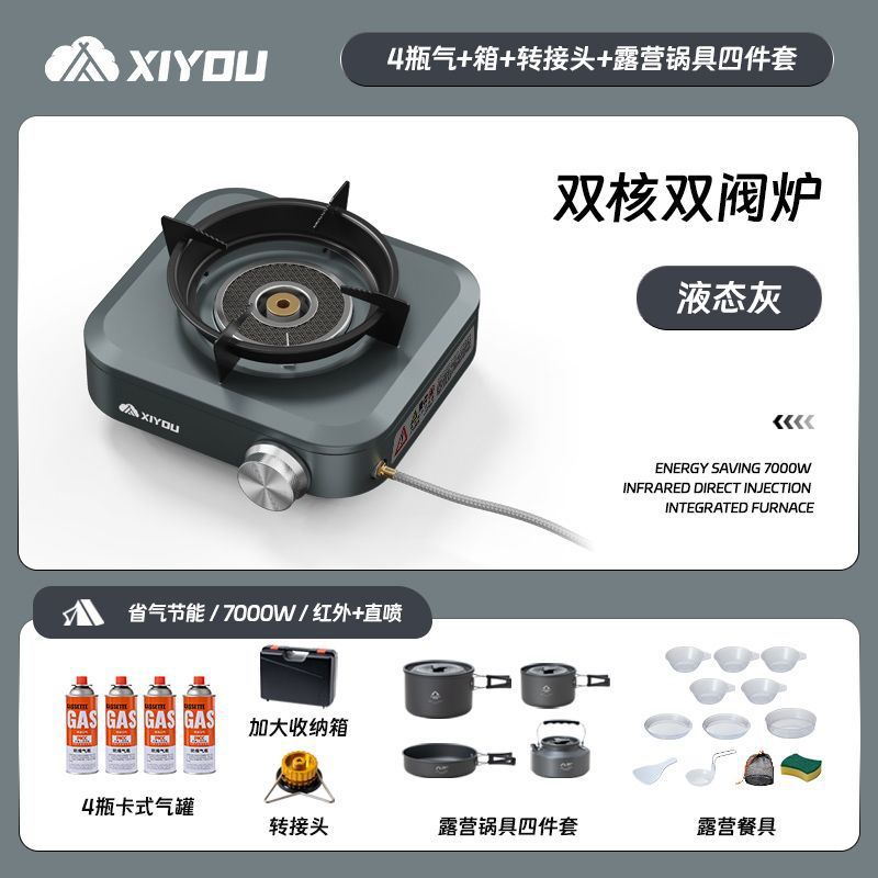 • [안정화 버전] 적외선 화재 분할로 - [업그레이드된 듀얼 코어 이중 밸브로] + 식기 무료 신형 4종 세트 + 가스통 4개