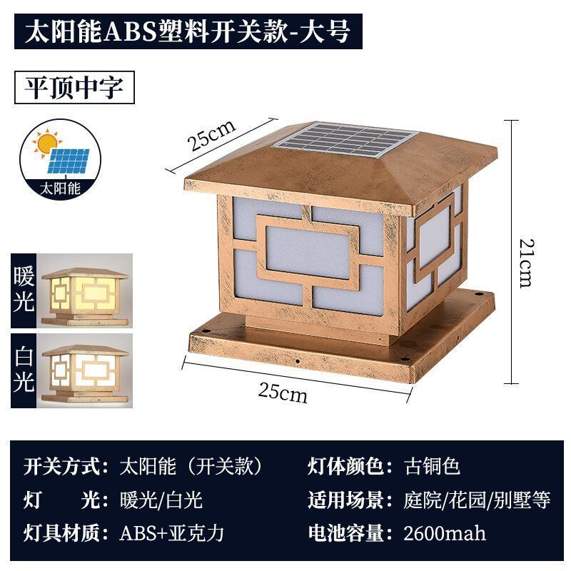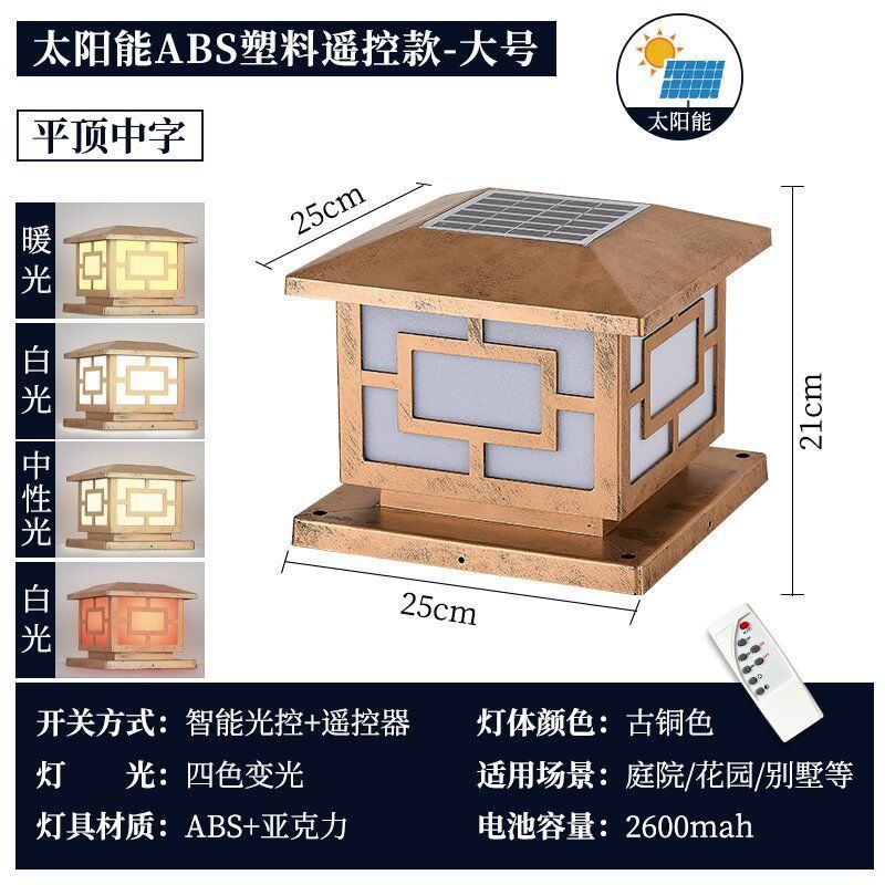 • ⊥±§ 배선 불필요 태양광 - ABS 재질 투톤 조명 - 15cm - 앤틱 골드 [15-20개 기둥 사용]