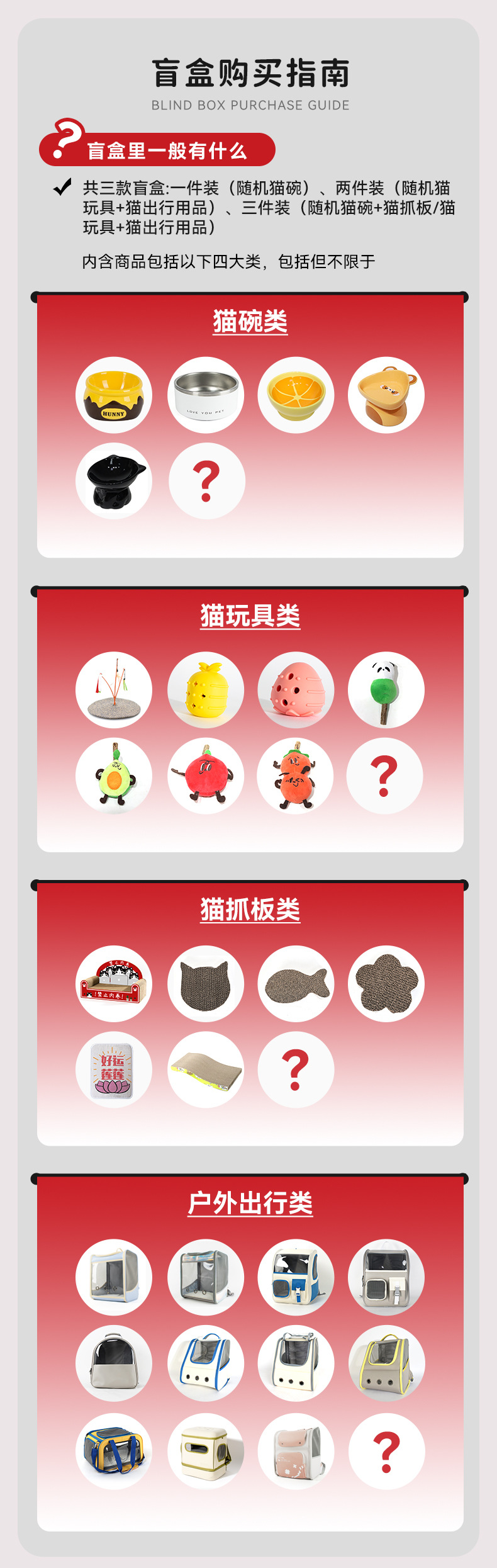 초특가 펫 서프라이즈 블라인드 박스 펫용품 랜덤 조합, 박스를 열고 즉시 고양이 그릇, 고양이 가방, 장난감을 얻을 수 있습니다.