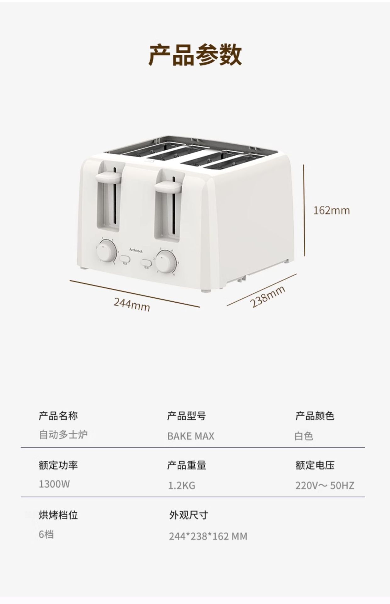 ArchiCook 토스터 가정용 조각 가열 샌드위치 소형 완전 자동 아침 식사 토스터 토스터스토어 가기