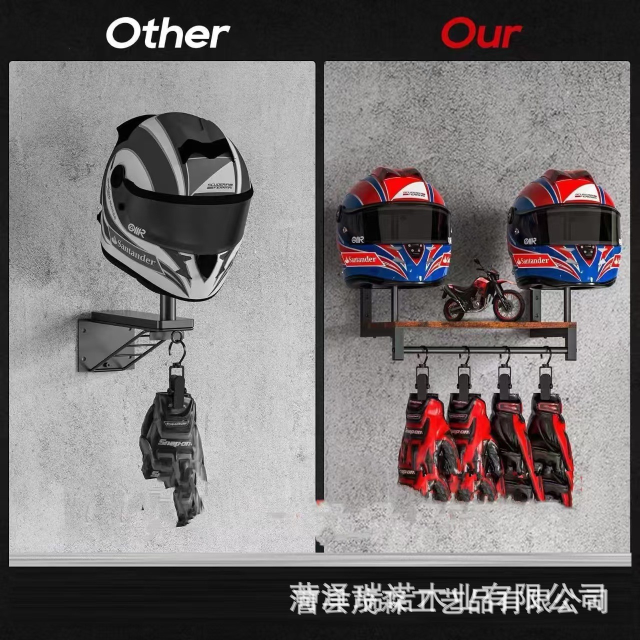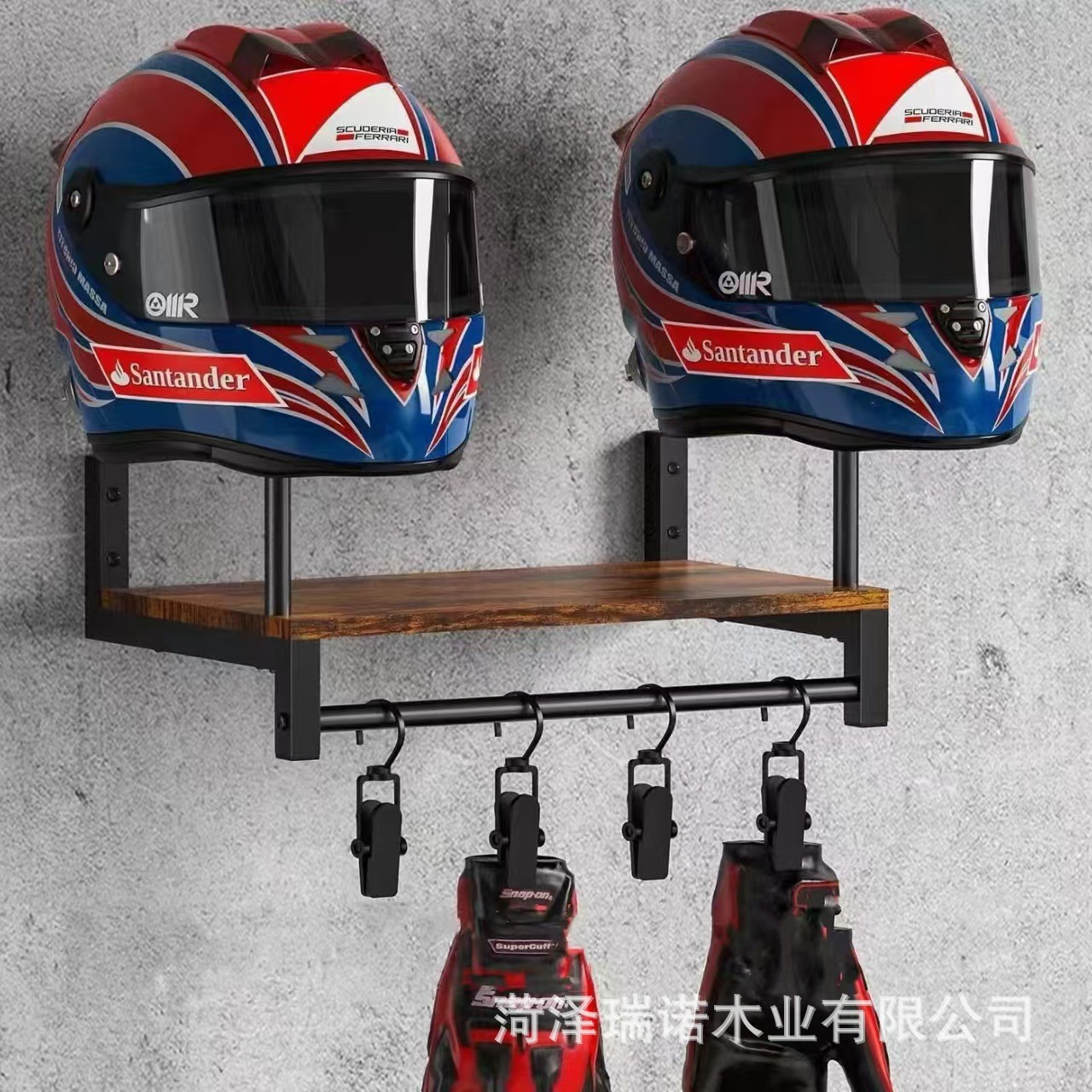 나무 헬멧 보관함 벽걸이 형 오토바이 장비 장갑 보관함 단단한 나무 오토바이 헬멧 디스플레이 랙