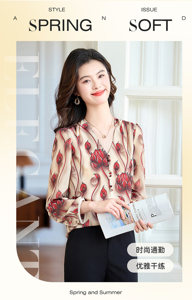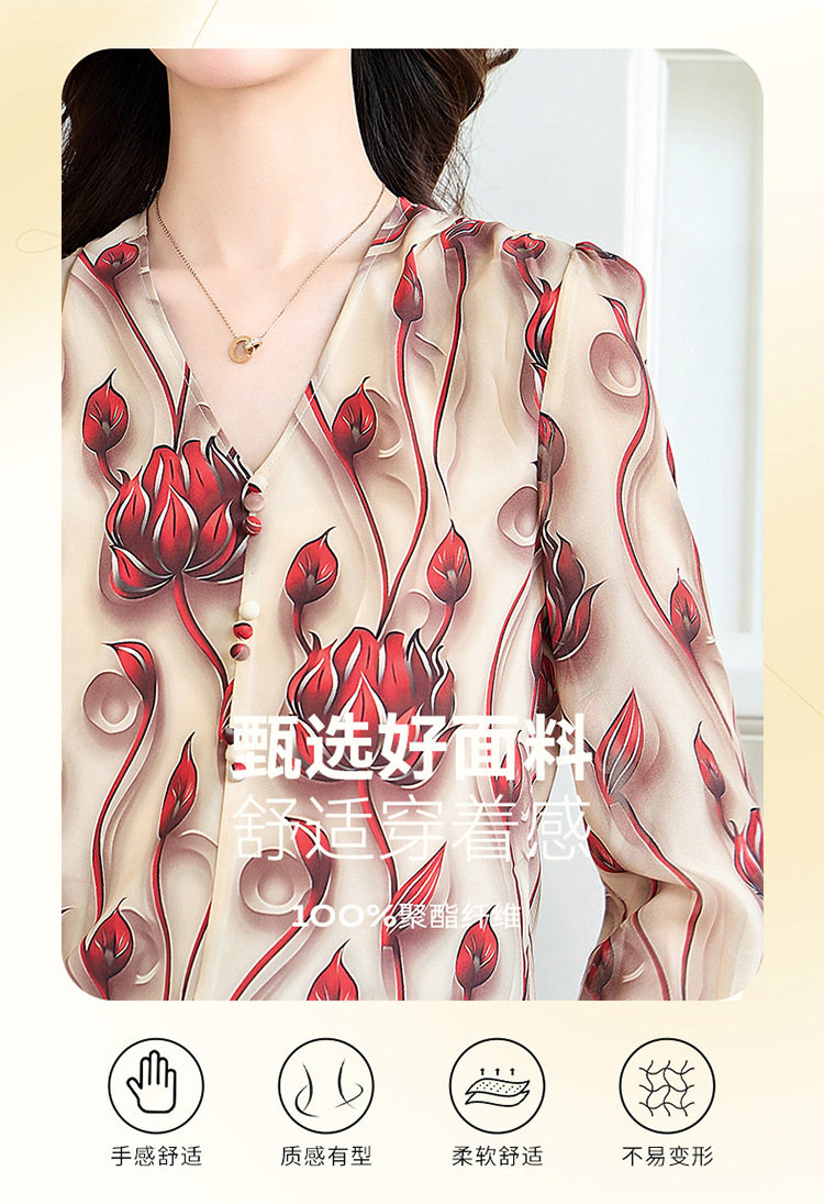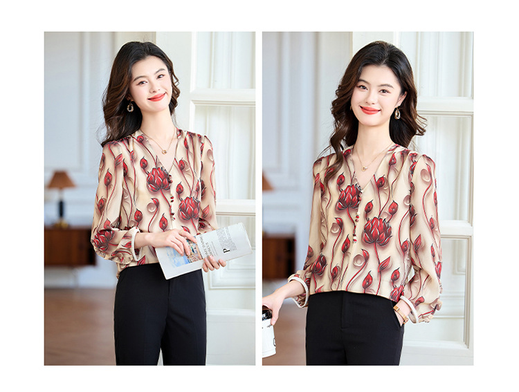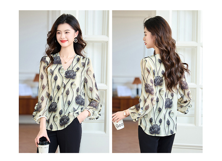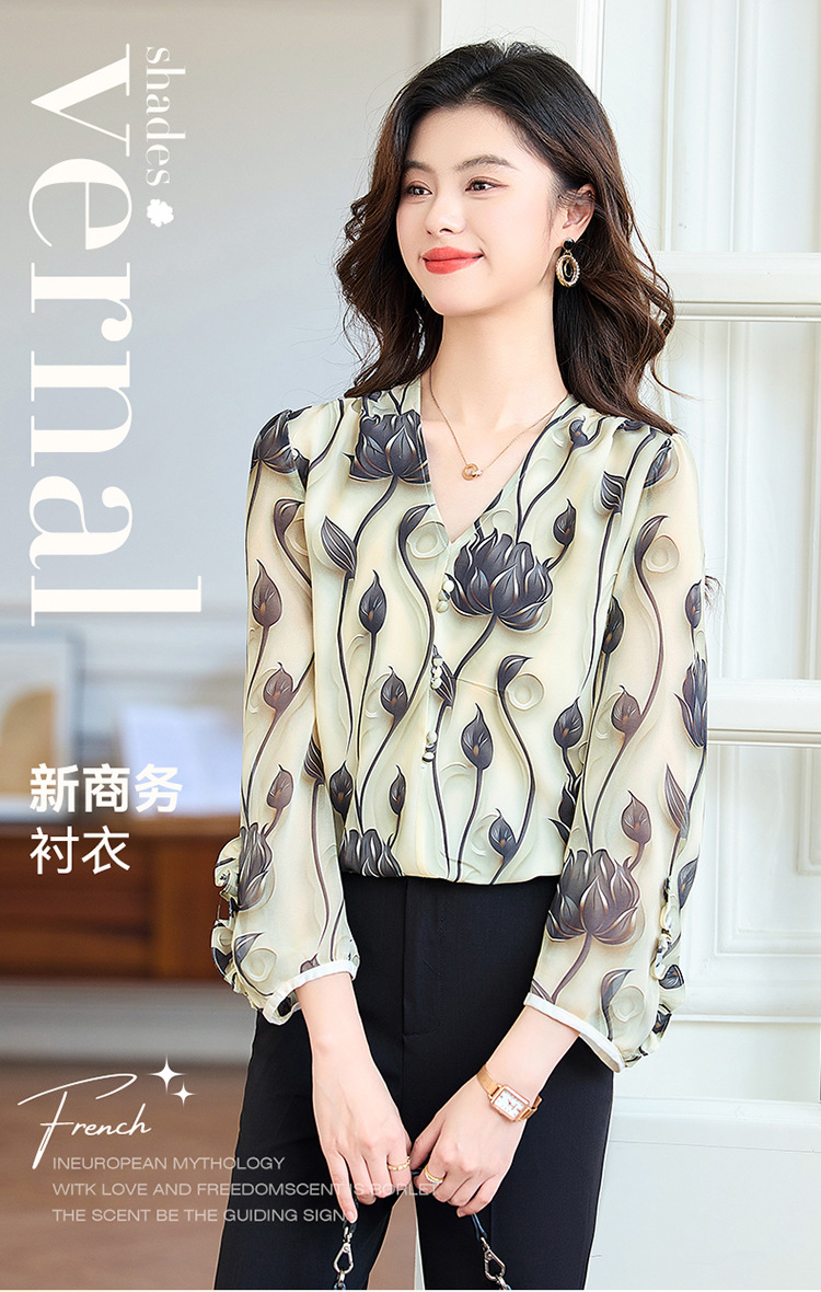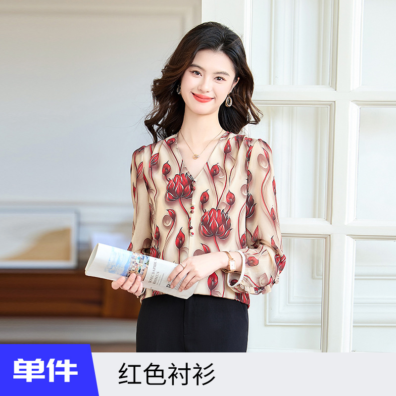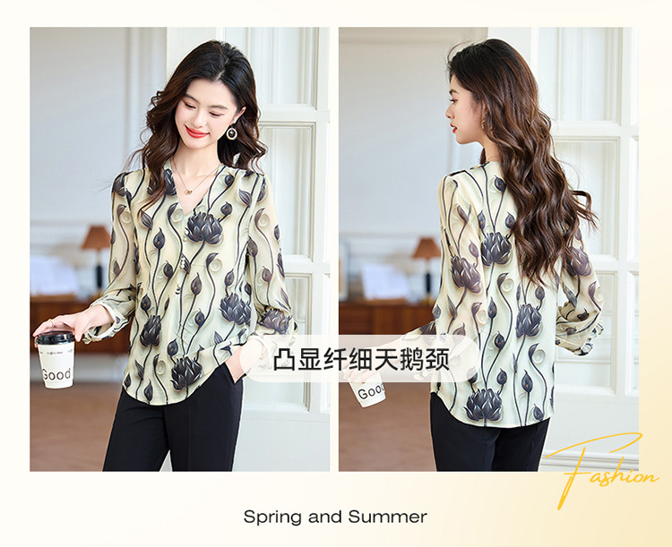 여성을 위한 패셔너블한 프린트 긴팔 쉬폰 셔츠, 봄 신상 캐주얼 연령 감소 셔츠, 고급스럽고 스타일리시한 엄마 상의