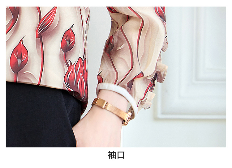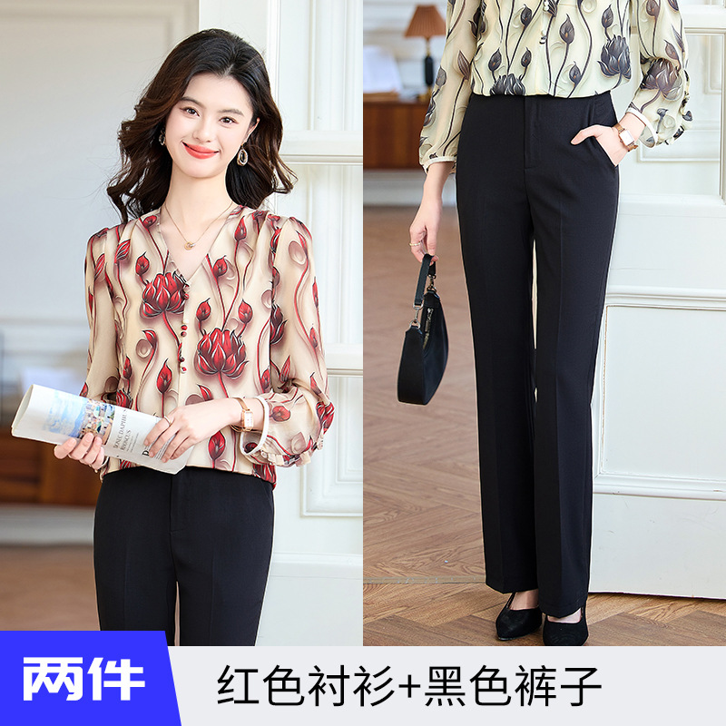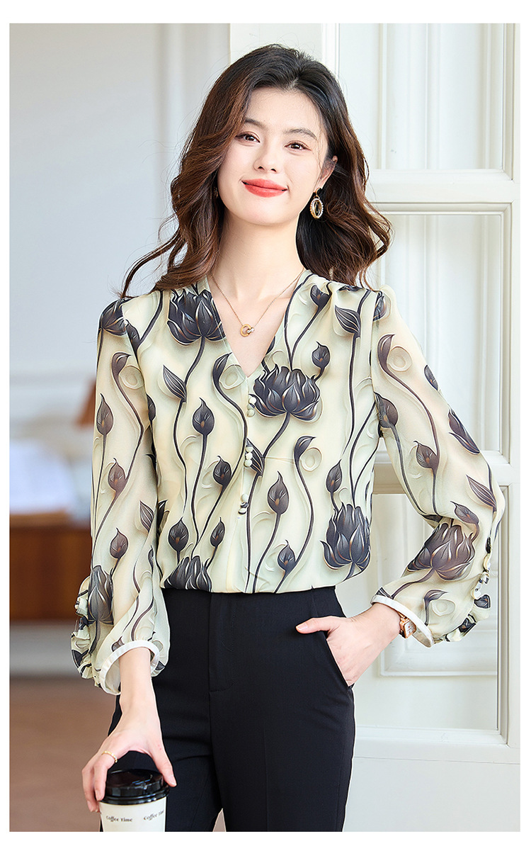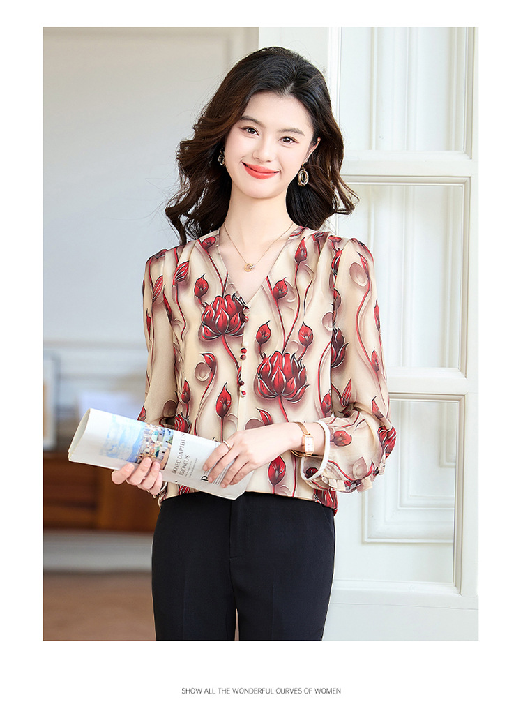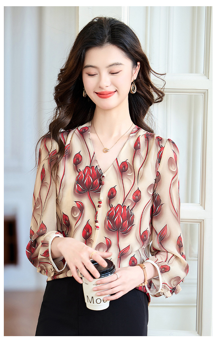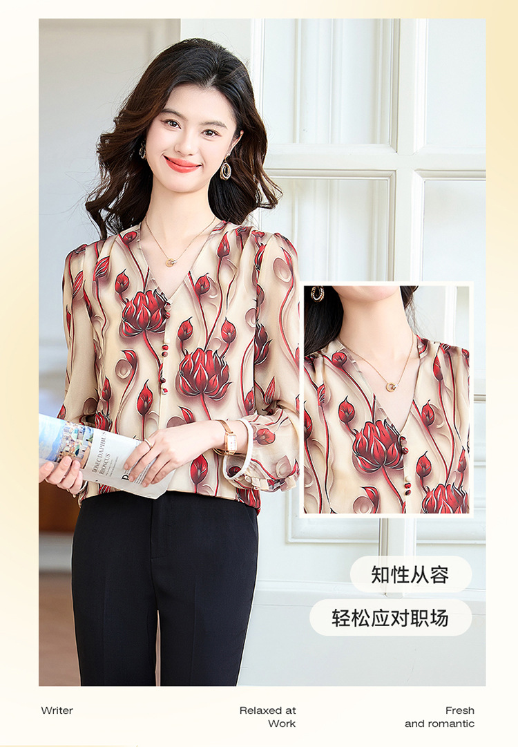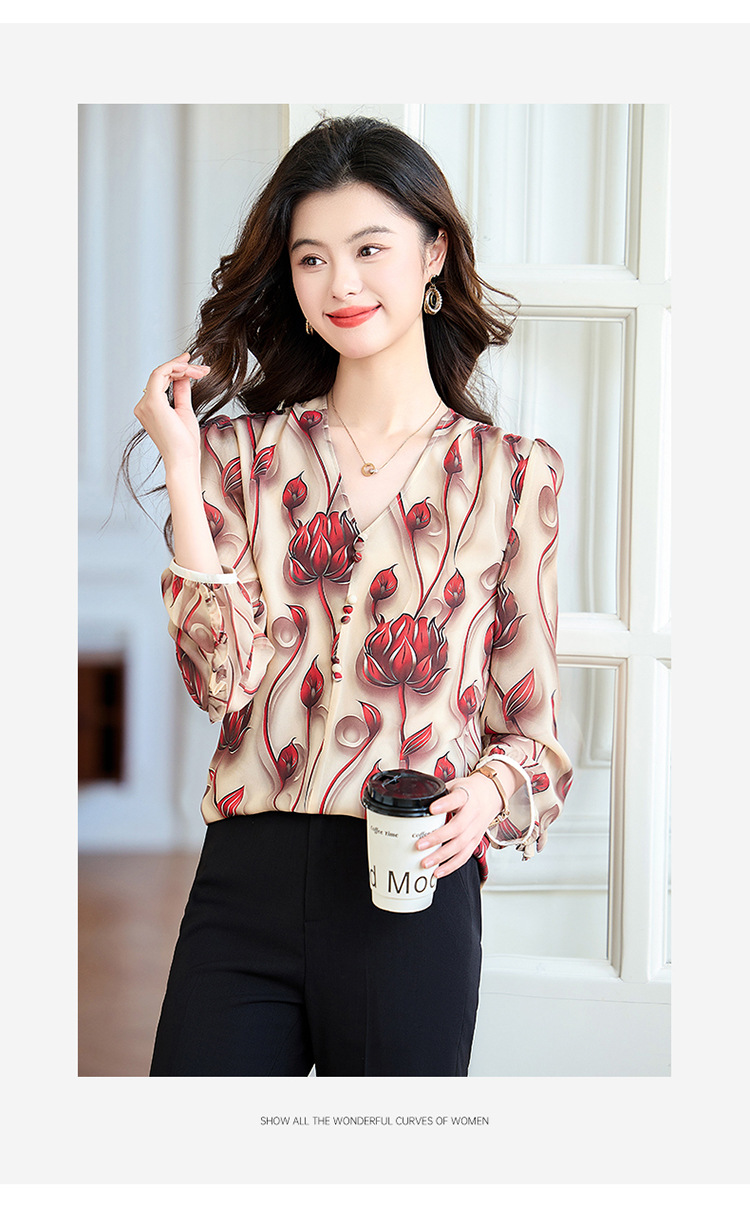 여성을 위한 패셔너블한 프린트 긴팔 쉬폰 셔츠, 봄 신상 캐주얼 연령 감소 셔츠, 고급스럽고 스타일리시한 엄마 상의