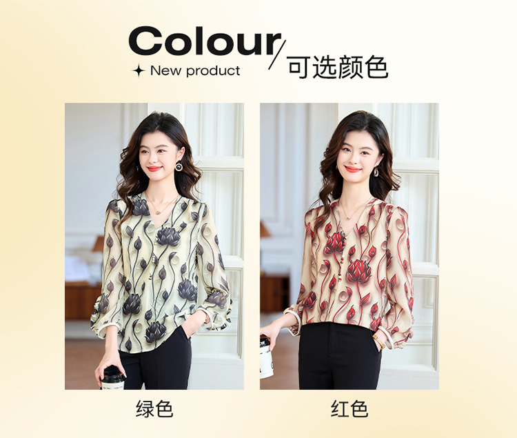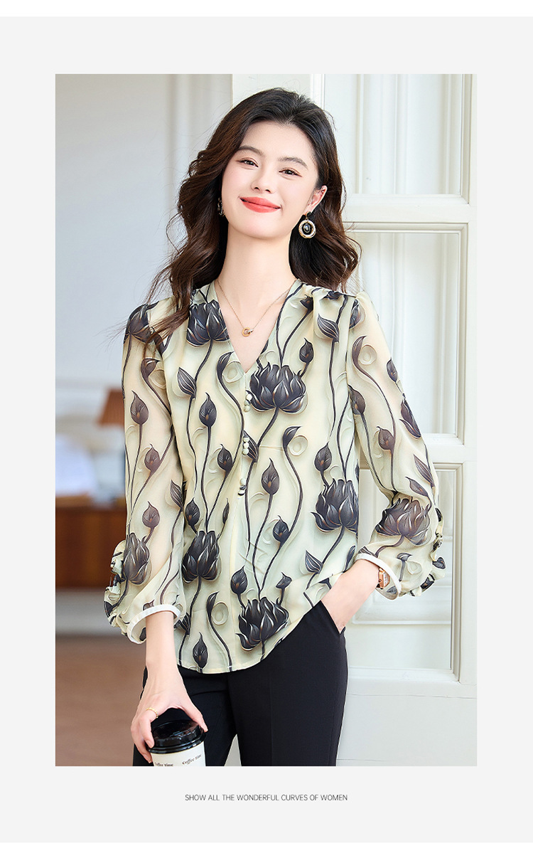 여성을 위한 패셔너블한 프린트 긴팔 쉬폰 셔츠, 봄 신상 캐주얼 연령 감소 셔츠, 고급스럽고 스타일리시한 엄마 상의스토어 가기
