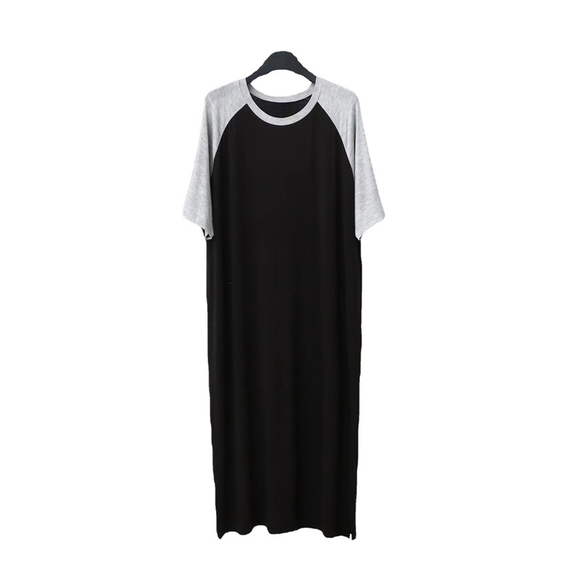 여름 스플 라이스 대비 색 캐주얼 루즈 드레스 남성 모달 라운드 넥 나이트 드레스 플러스 사이즈 얇은 홈 목욕 가운스토어 가기