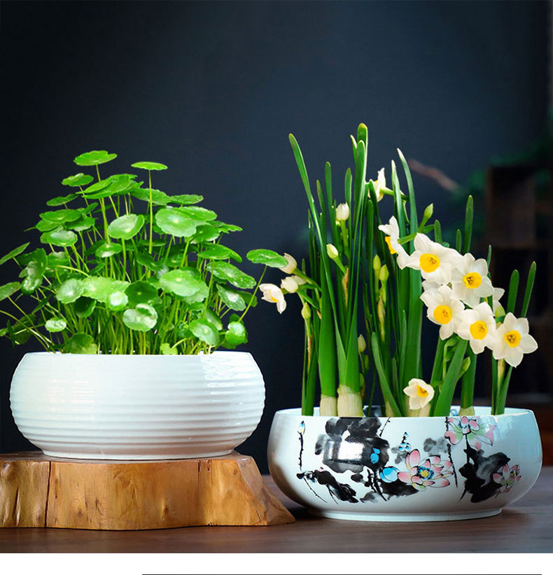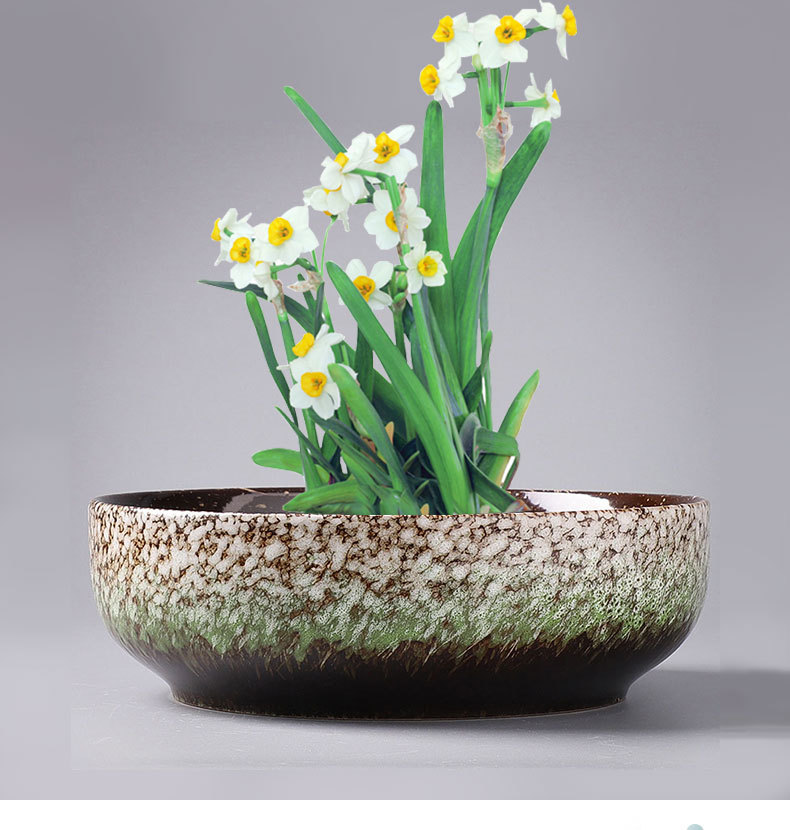 구리 동전 화분, 창의적인 수선화 수련 그릇, 비다공성 세라믹 가정용 대형 다육 수경 용기 도매스토어 가기