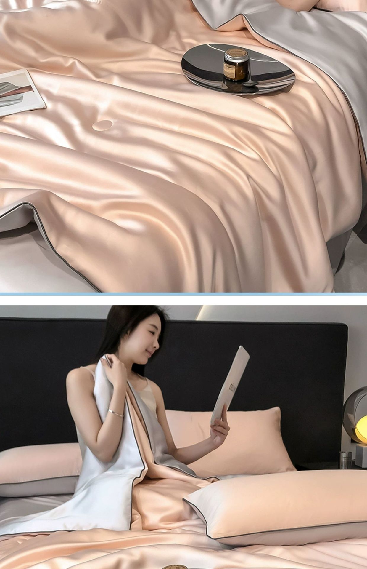 리오셀 텐셀 여름 이불 여름 시원한 얼음 실크 여름 시원한 이불 에어컨 이불 싱글 기계 세탁 가능한 얇은 이불 4종 세트