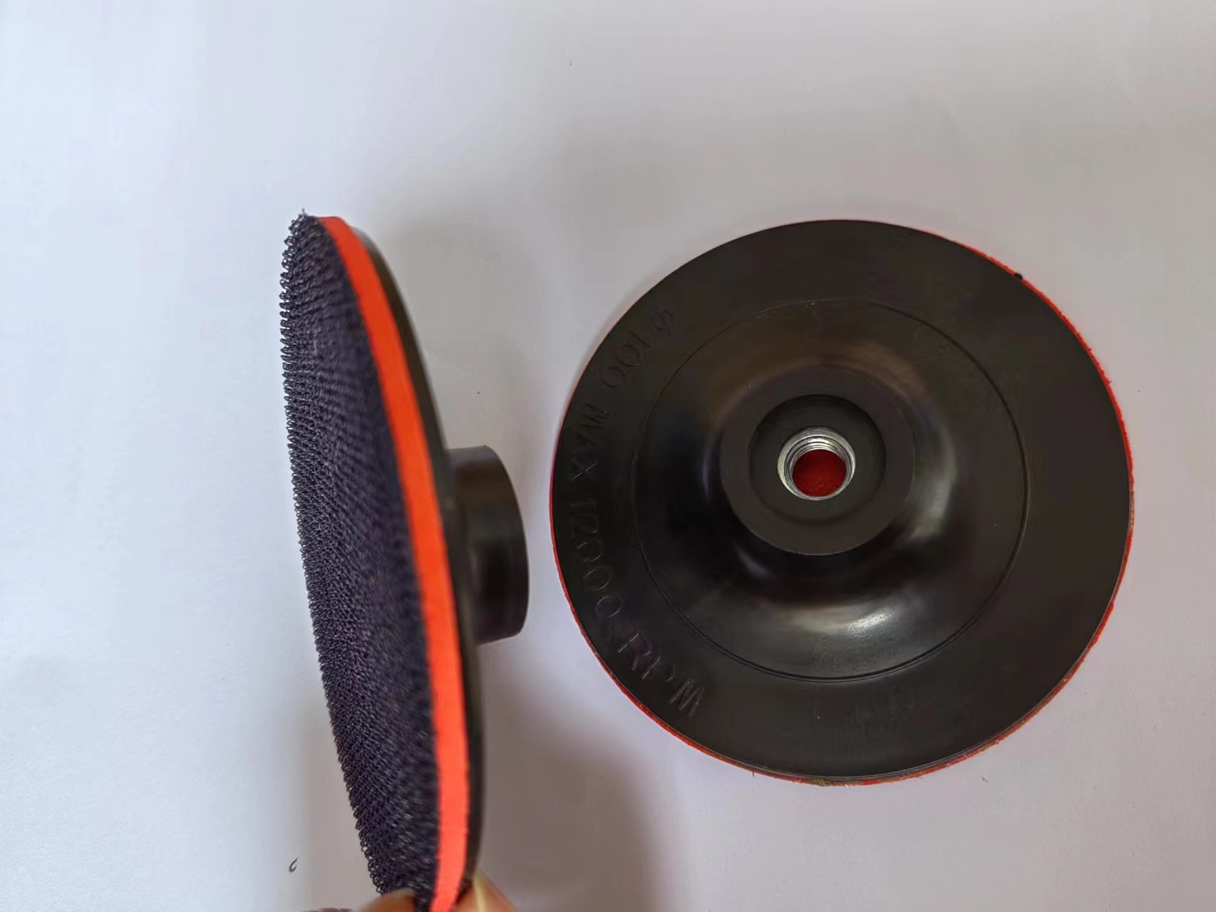 使用方法:正面有螺纹可以拧上打磨机,反面可黏上植绒砂纸片,水磨片或者自粘羊毛球
