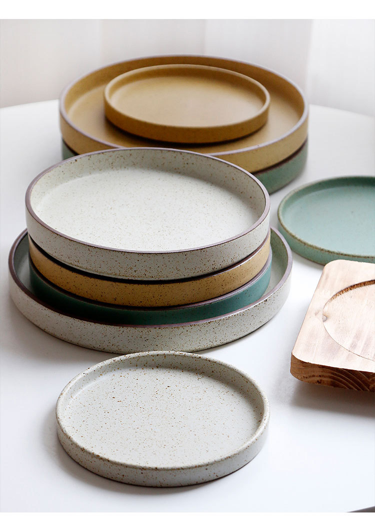 OMK 일본식 거친 도자기 접시 크리 에이 티브 맞춤형 레스토랑 식기 작은 접시 복고풍 라운드 디너 접시 도매