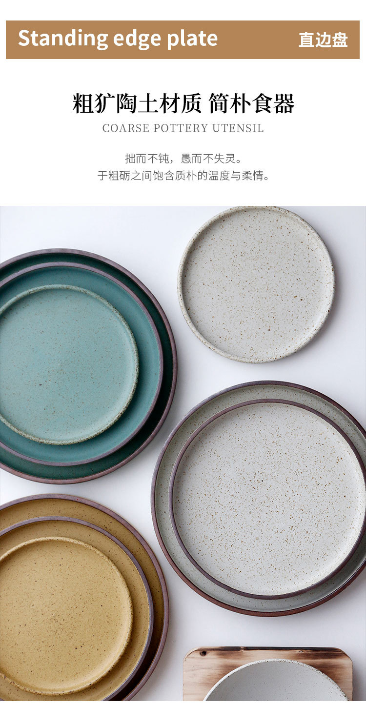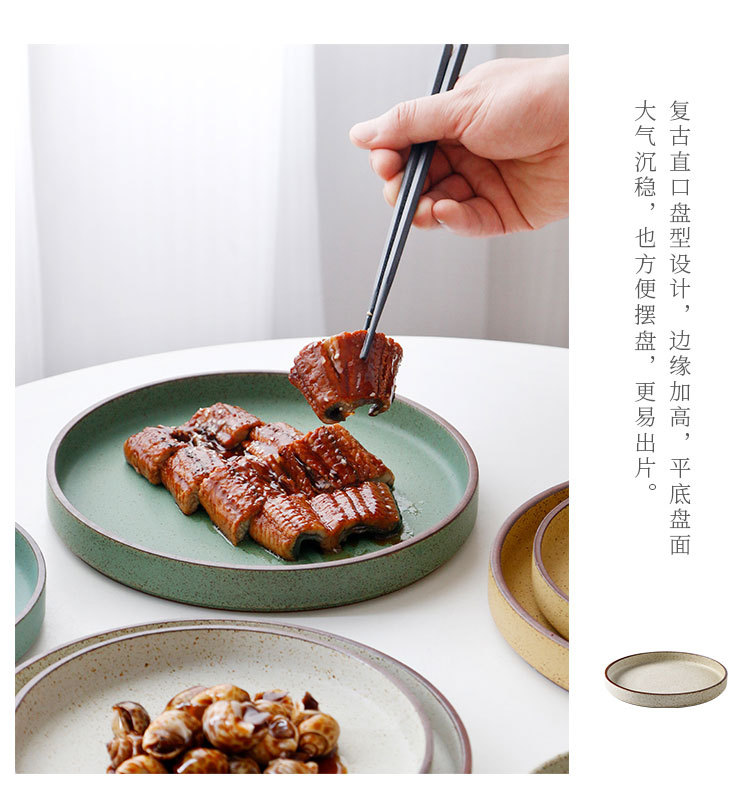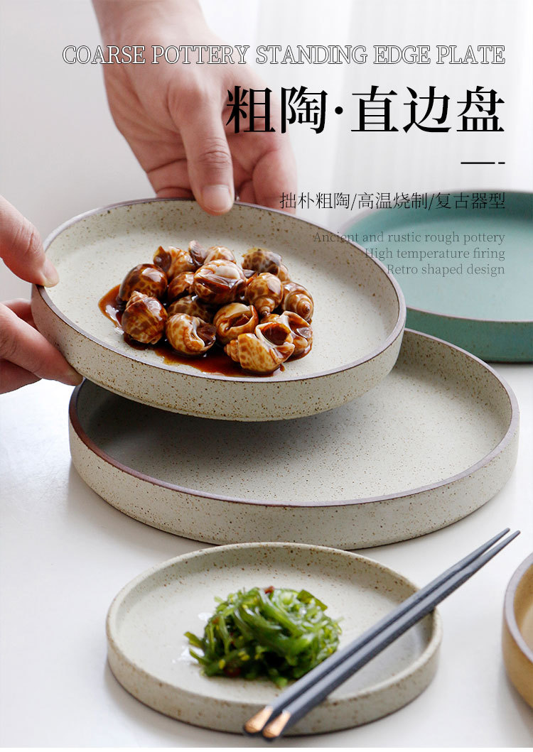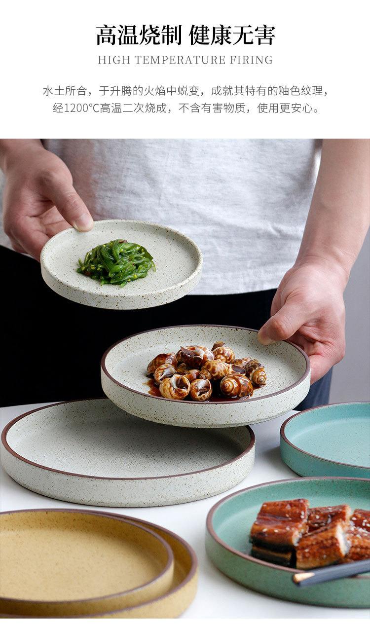 OMK 일본식 거친 도자기 접시 크리 에이 티브 맞춤형 레스토랑 식기 작은 접시 복고풍 라운드 디너 접시 도매스토어 가기