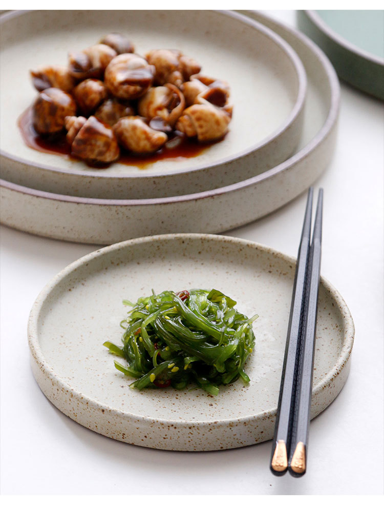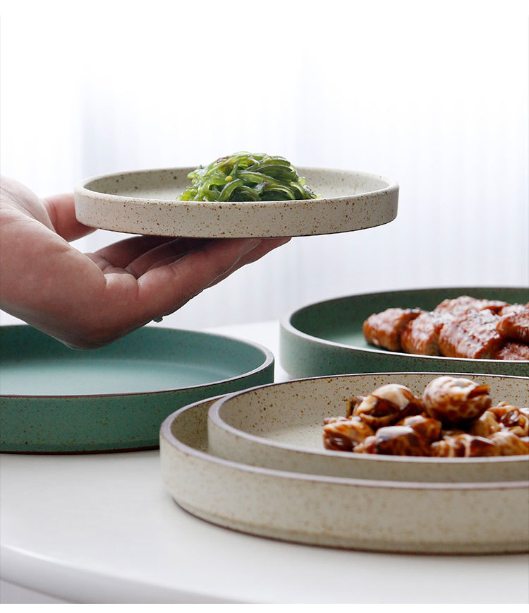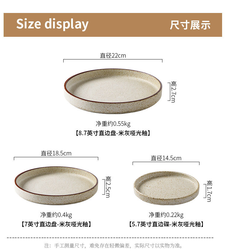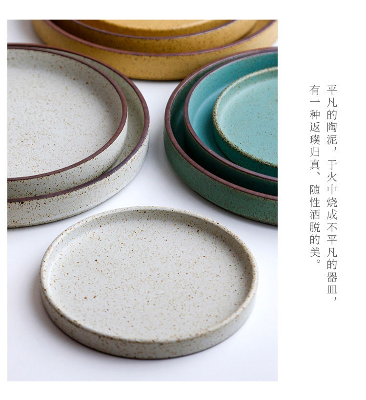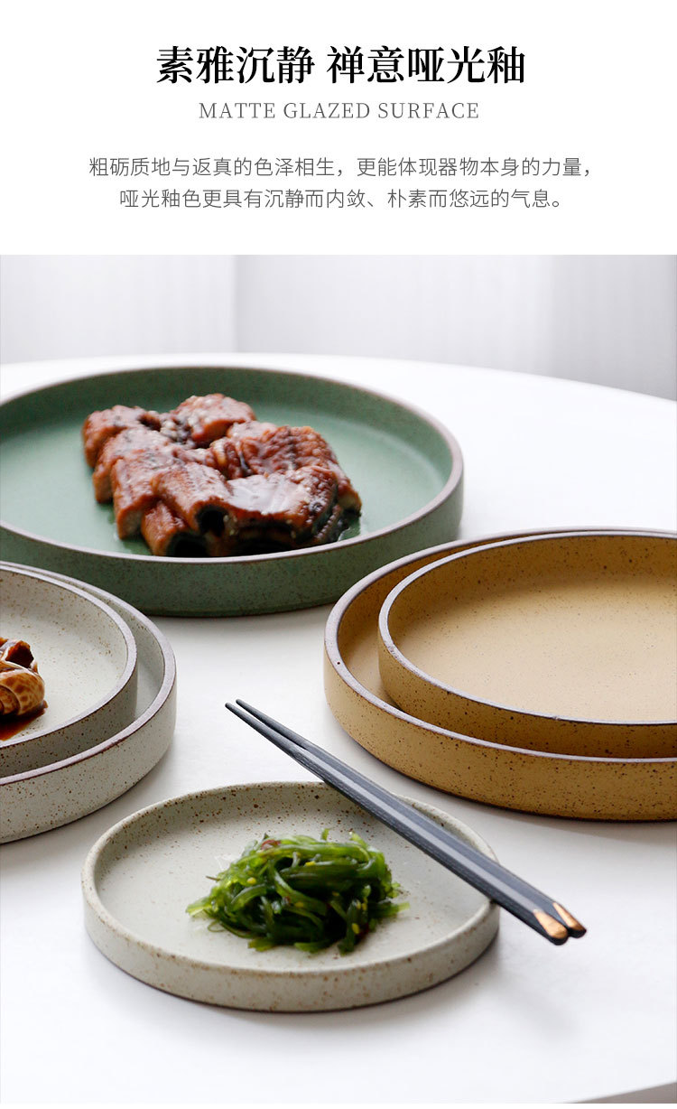 OMK 일본식 거친 도자기 접시 크리 에이 티브 맞춤형 레스토랑 식기 작은 접시 복고풍 라운드 디너 접시 도매스토어 가기