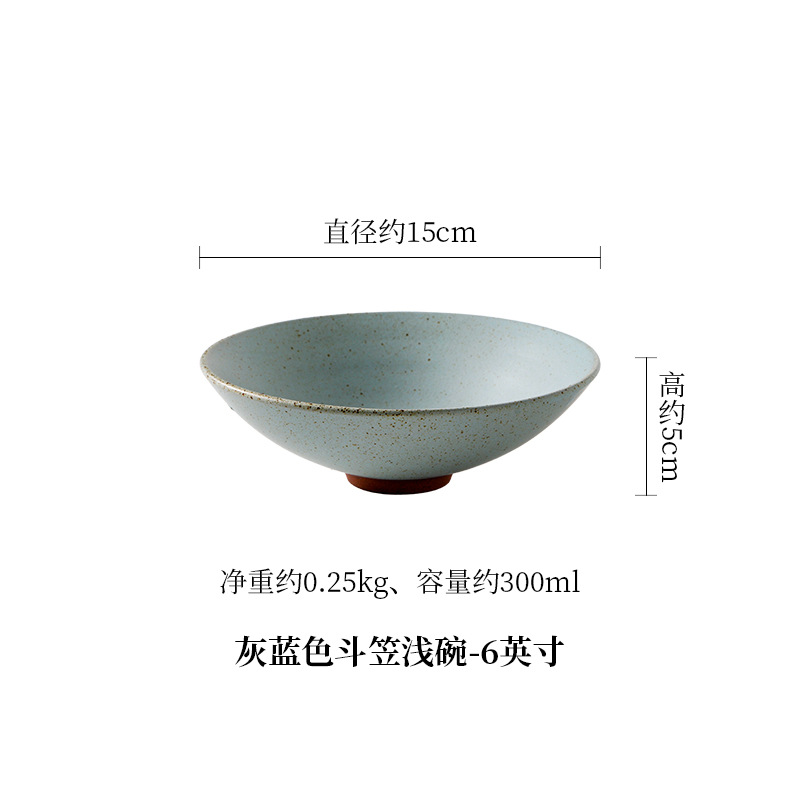 • 그레이 블루 대나무 모자 얕은 그릇 - 6inch (나사 없는 매끄러운 표면)