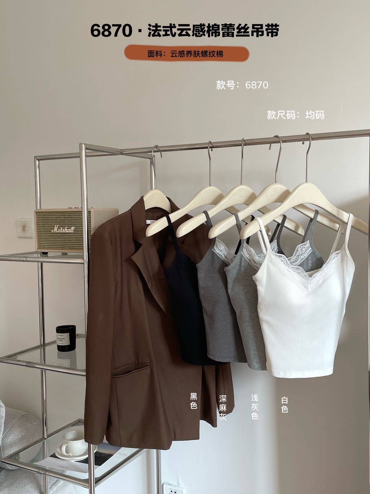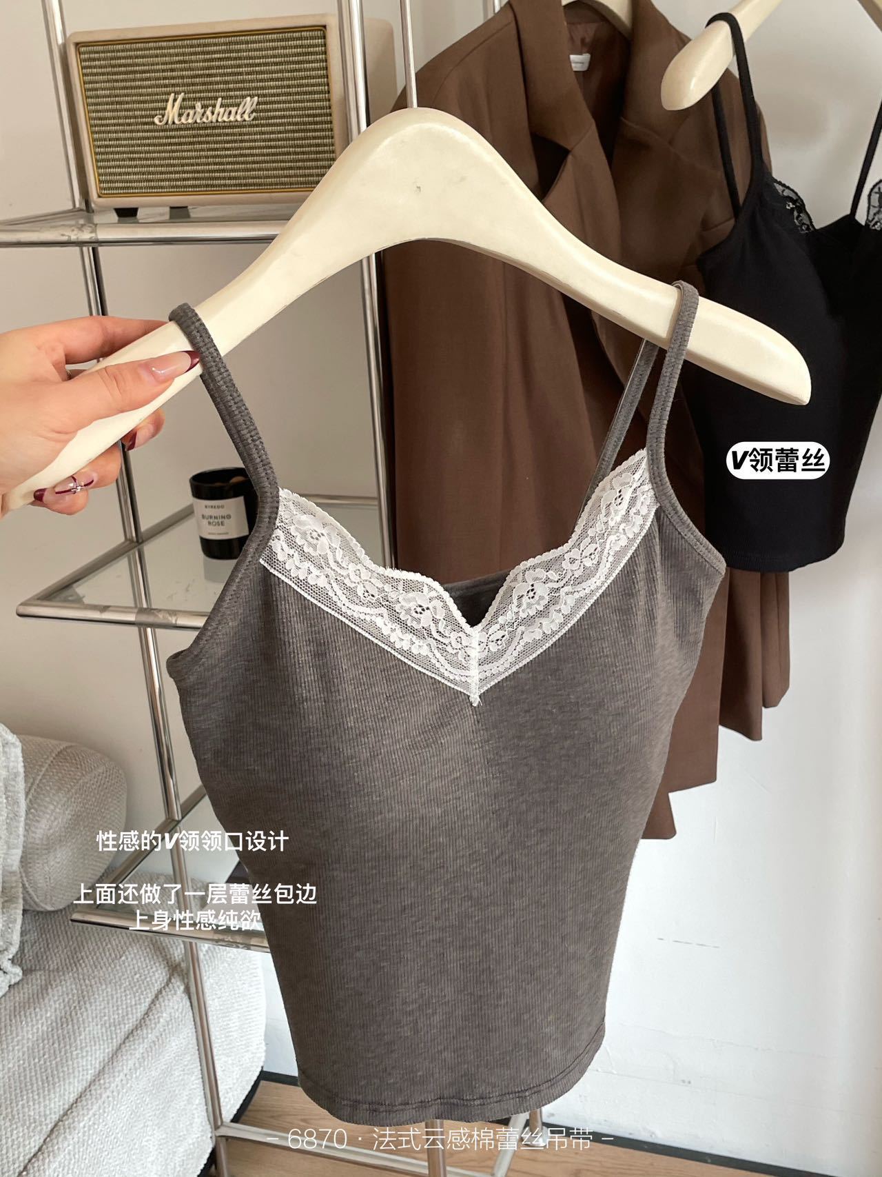 옷걸이 6870 프렌치 레이스 클라우드 느낌의 코튼 캐미솔 라이트 럭셔리 다용도 고급 가슴 패드 탑