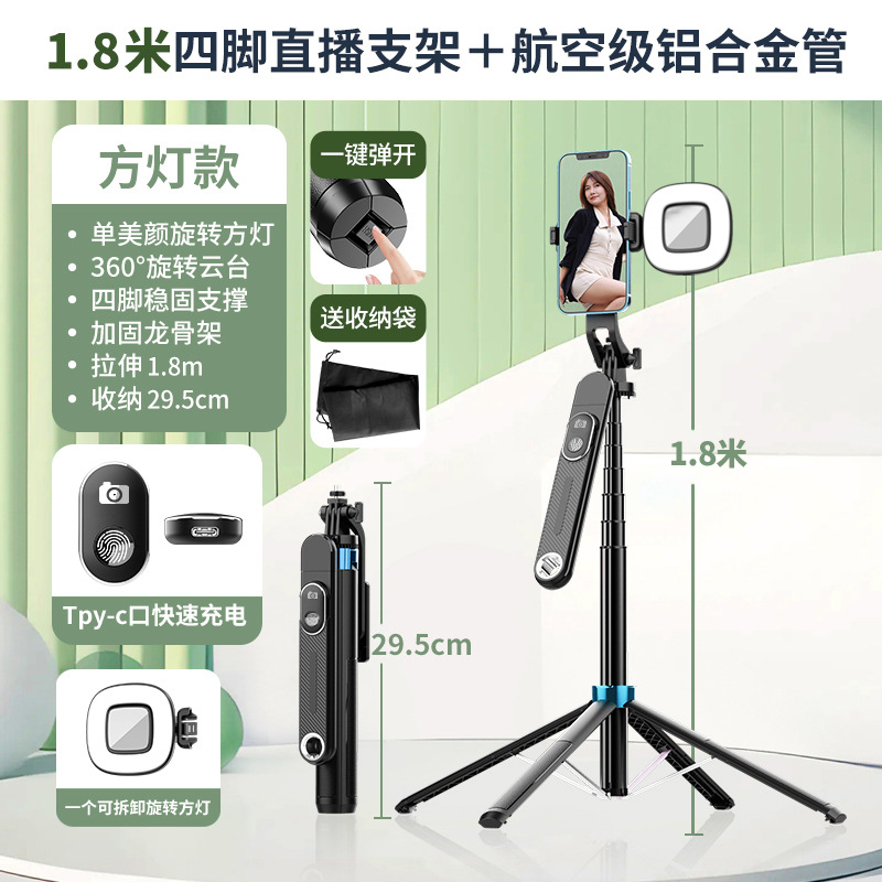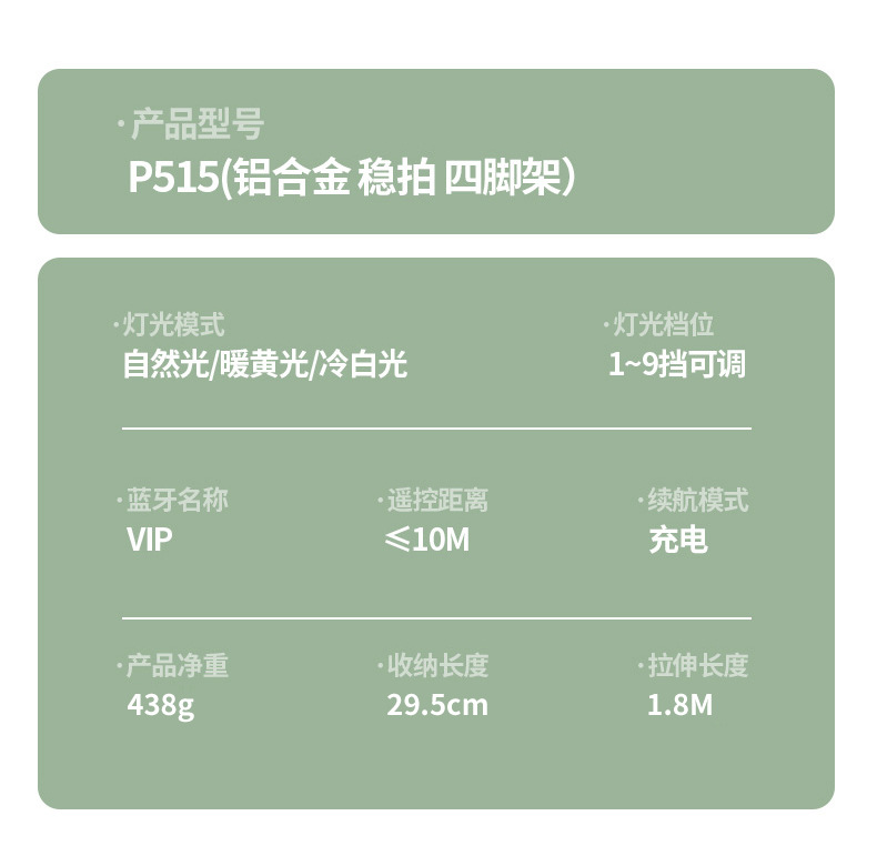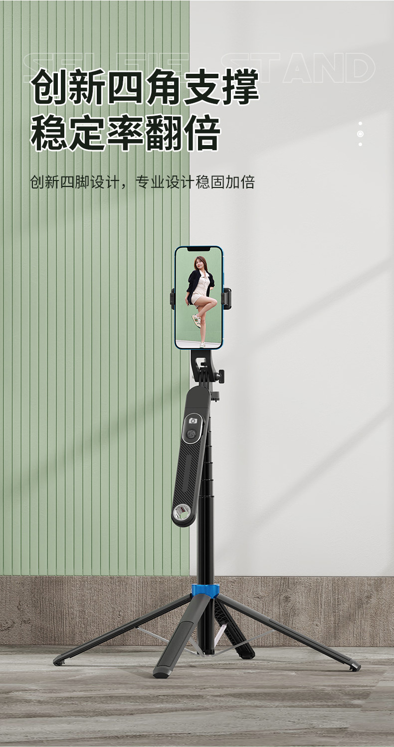 P515 휴대폰 블루투스 셀카봉, 원클릭으로 개폐 가능, 접이식 손떨림 방지 쿼드 코너 스탠드, 라이브 방송 여행 사진 유물