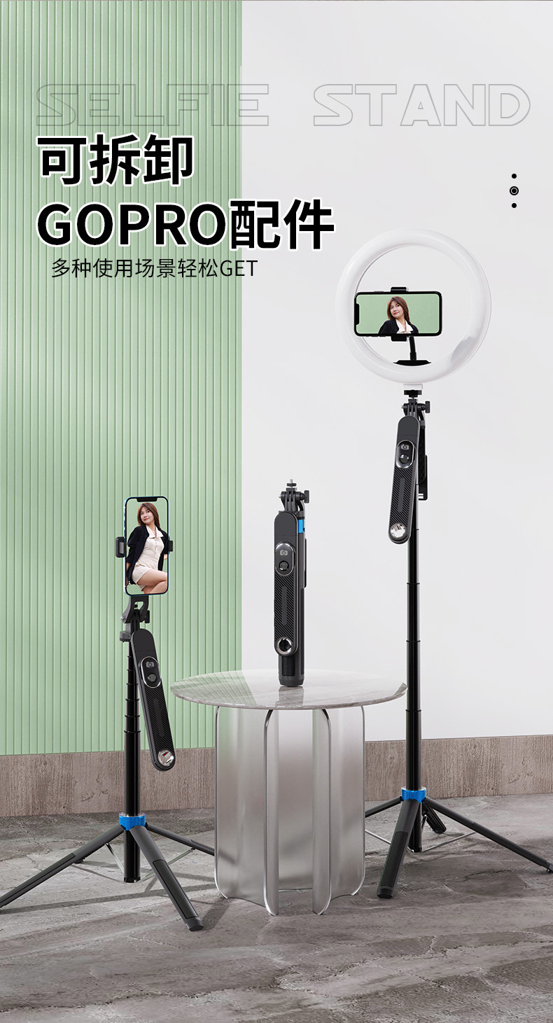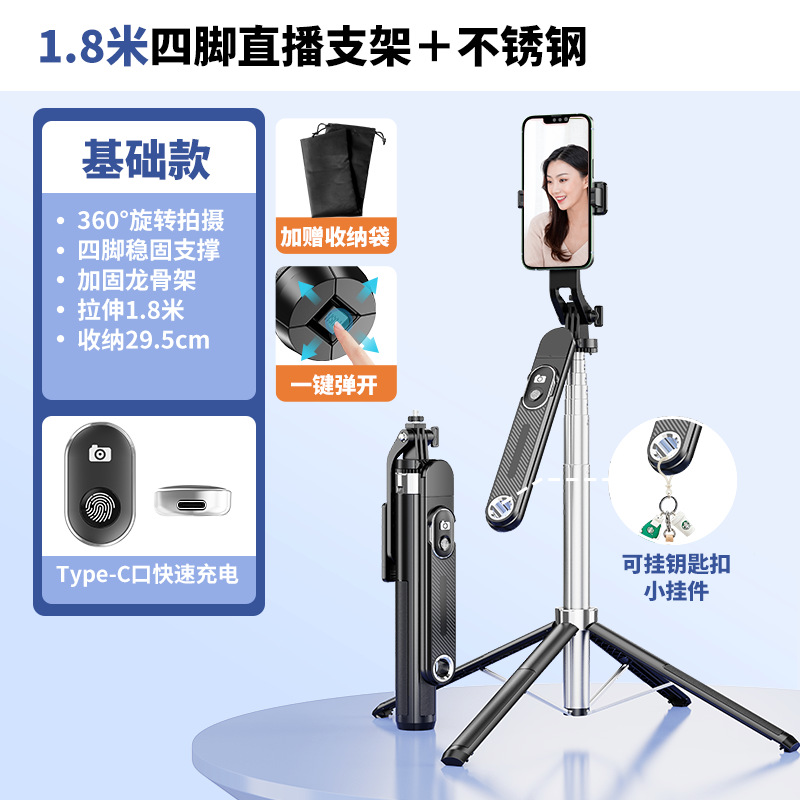 P515 휴대폰 블루투스 셀카봉, 원클릭으로 개폐 가능, 접이식 손떨림 방지 쿼드 코너 스탠드, 라이브 방송 여행 사진 유물스토어 가기