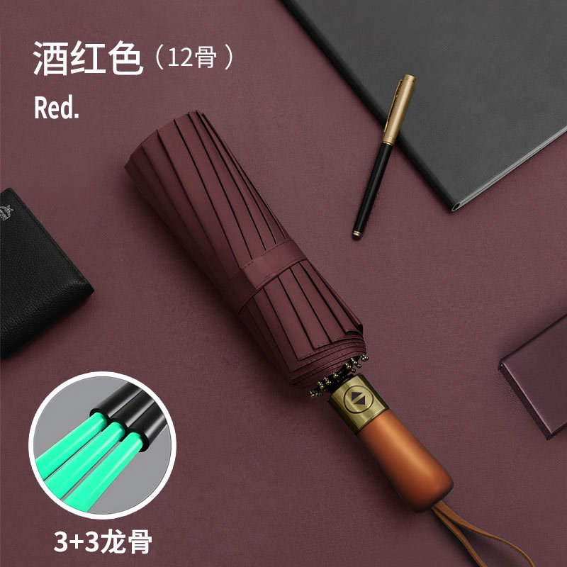 새로운 단단한 나무 손잡이 자동 우산 12 뼈 강화 방풍 우산 비즈니스 완전 자동 접는 우산 남성용 비 또는 빛 우산