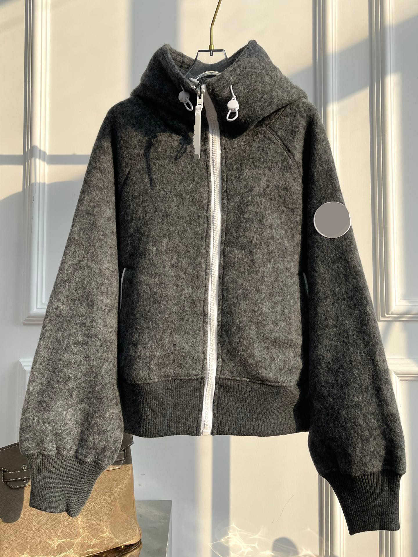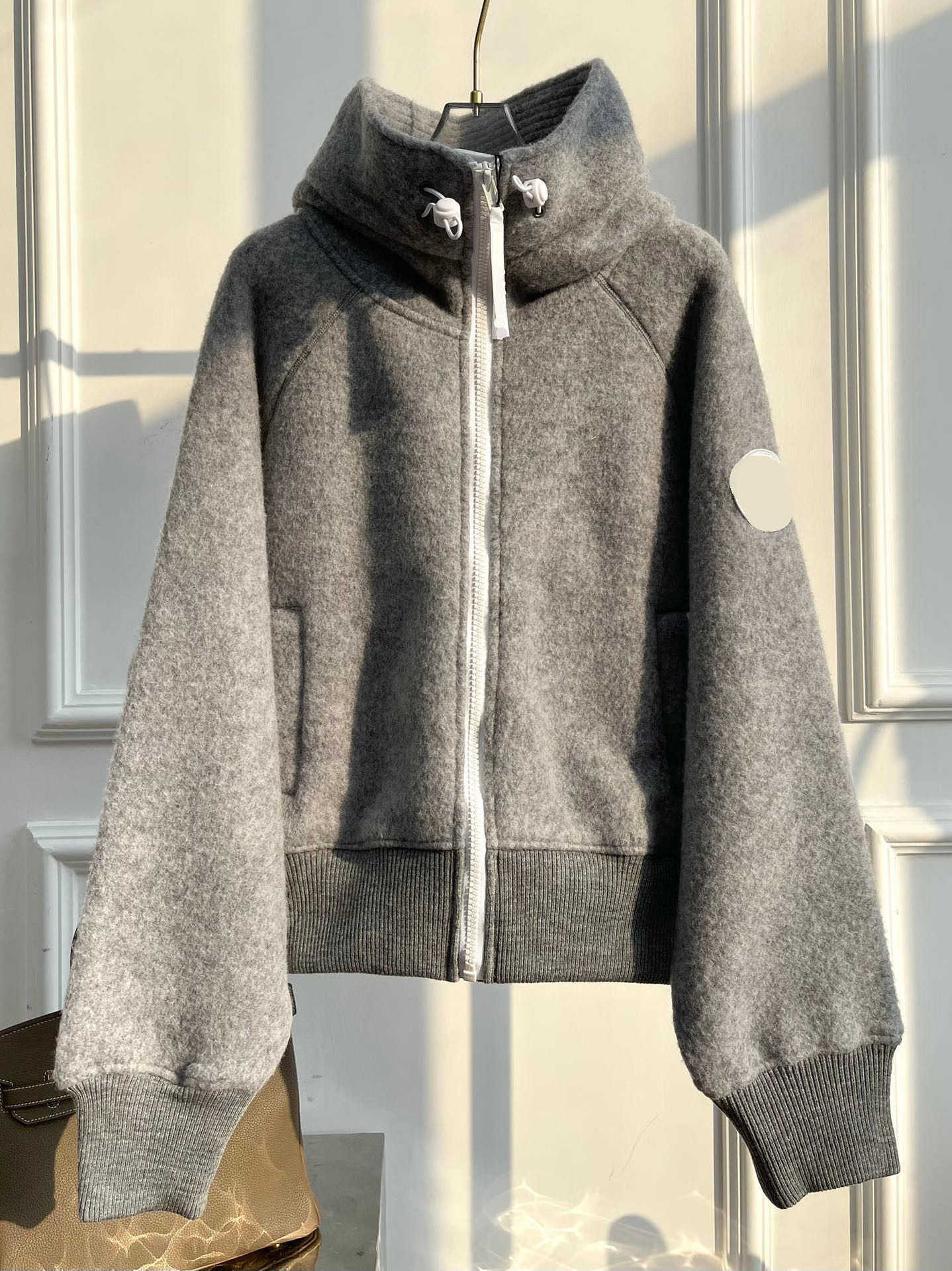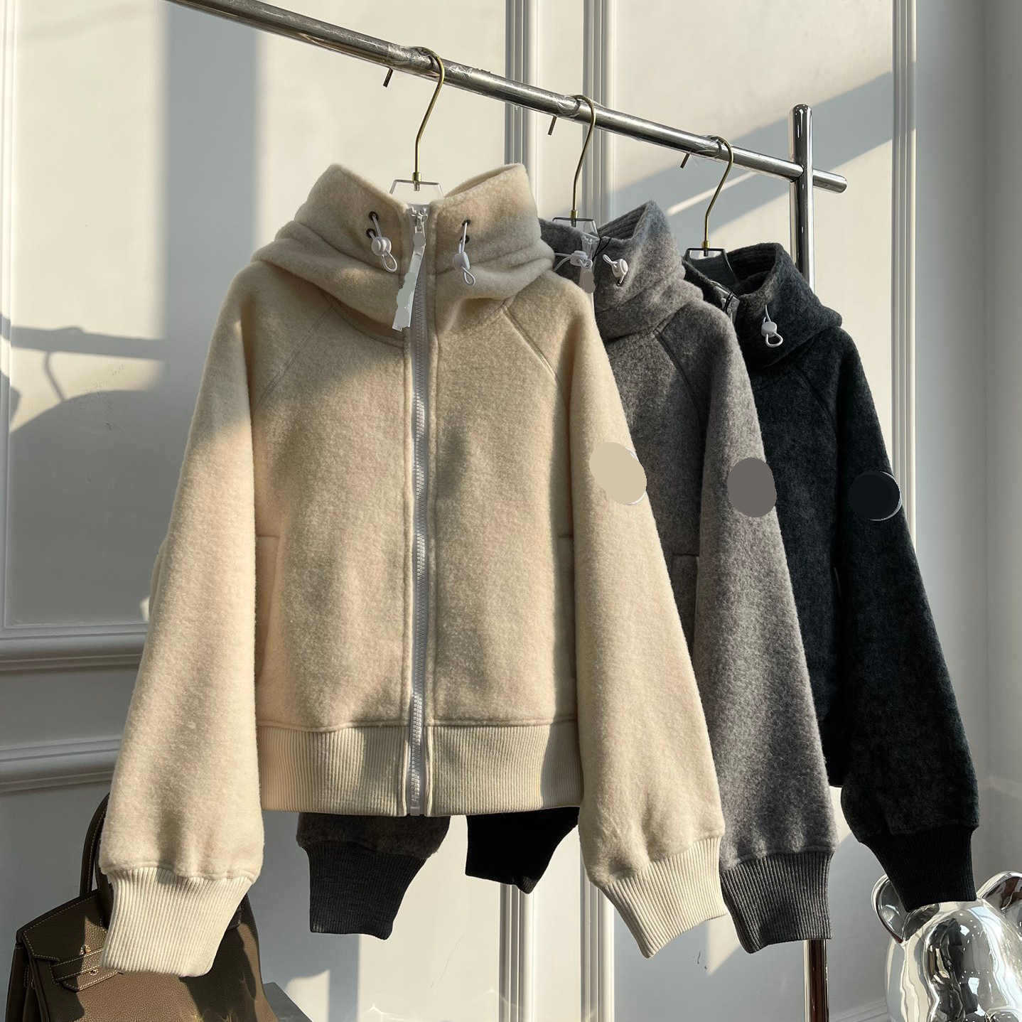 신형 h+ 대형 거위 로고 암밴드 자켓 양면 플리스 레터링 지퍼 후드 자켓 남녀공용스토어 가기