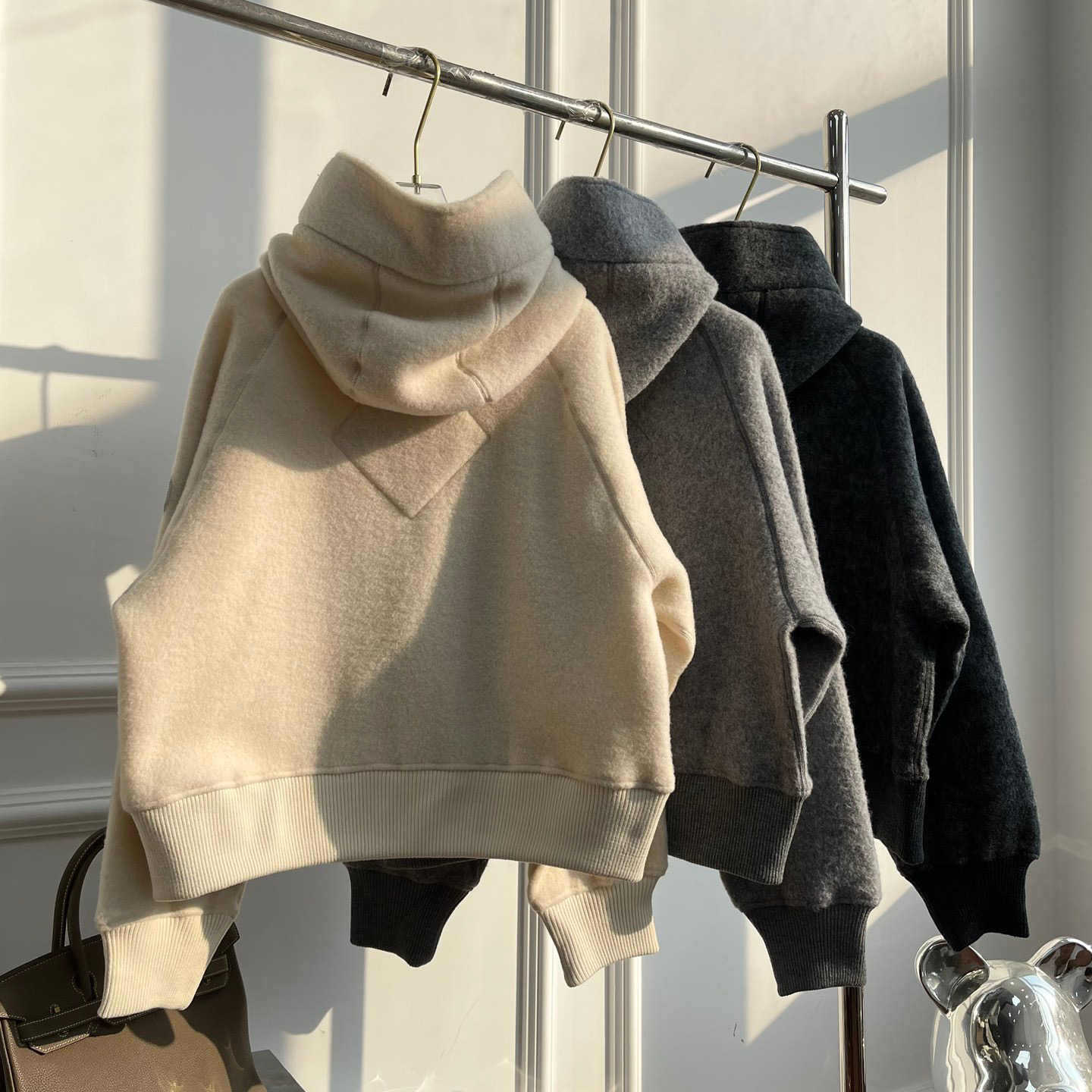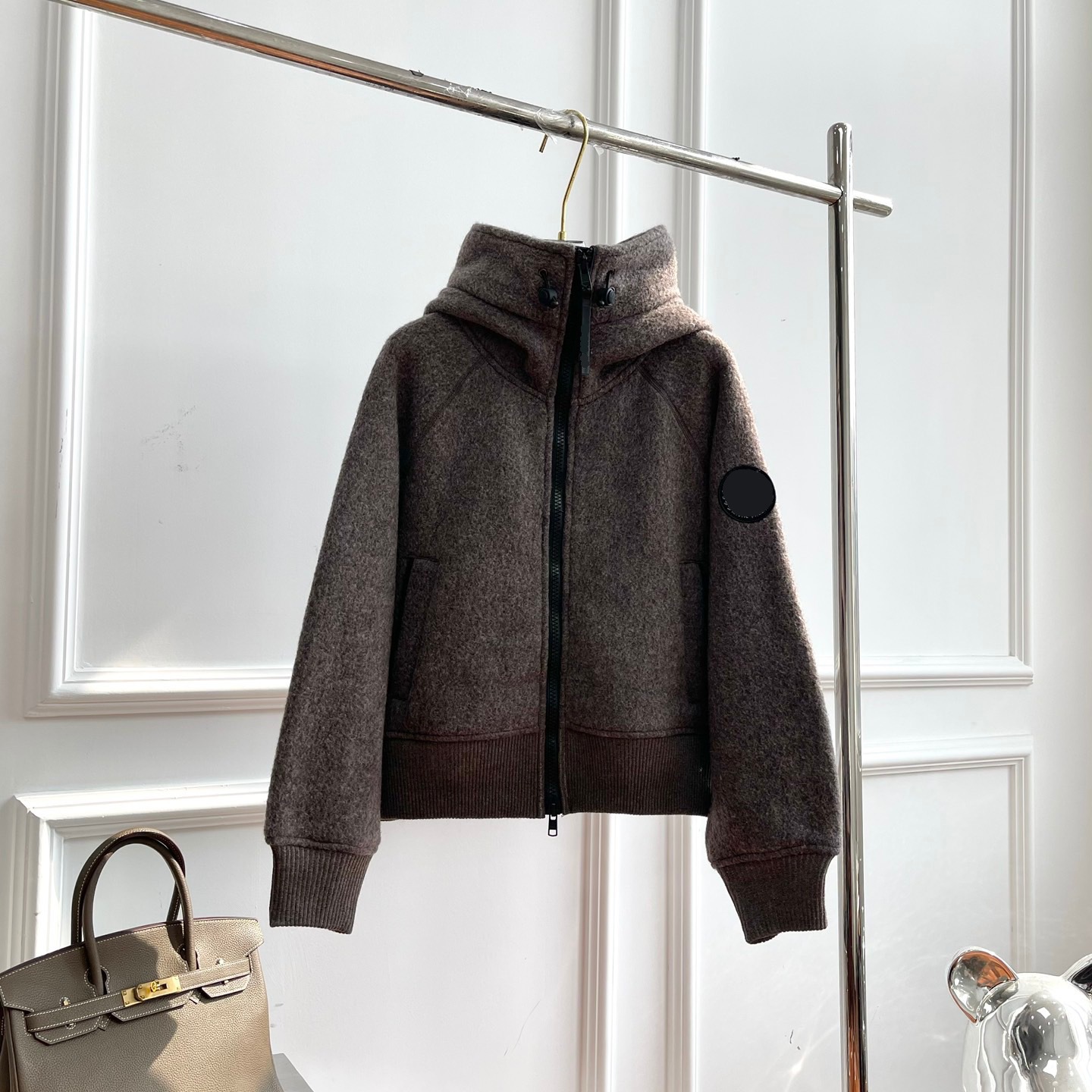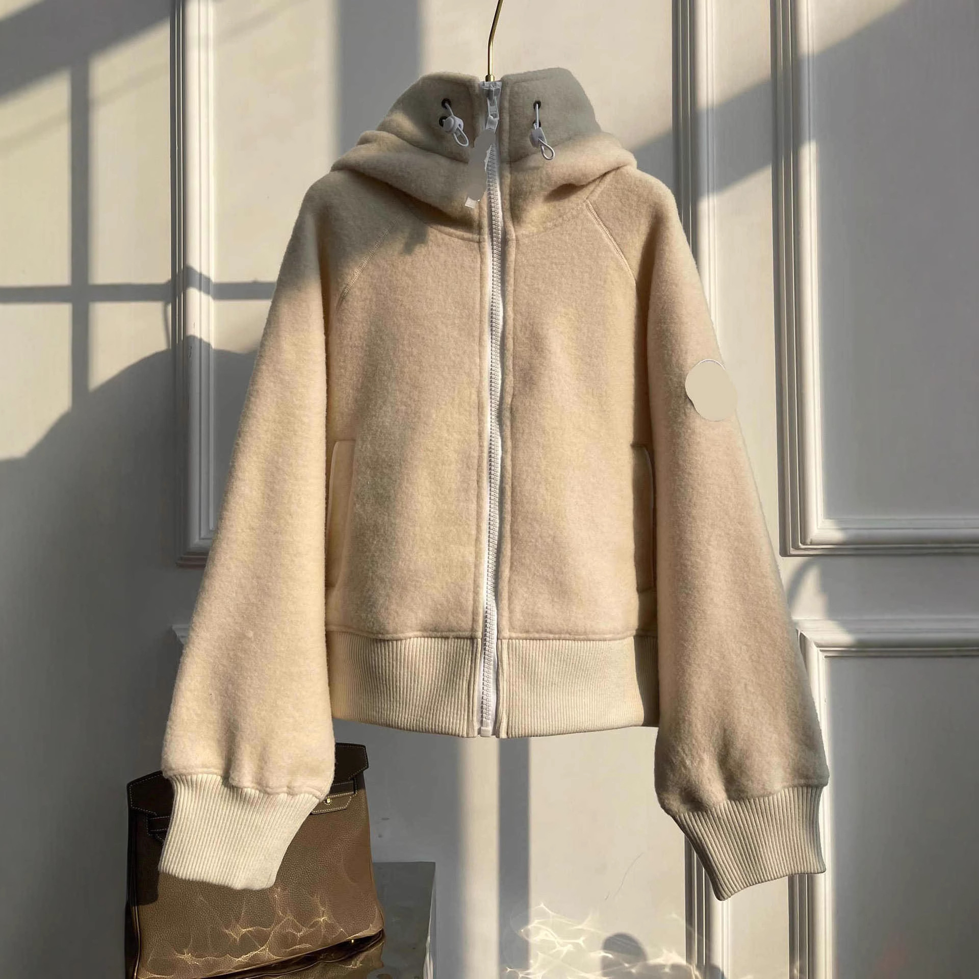 신형 h+ 대형 거위 로고 암밴드 자켓 양면 플리스 레터링 지퍼 후드 자켓 남녀공용스토어 가기