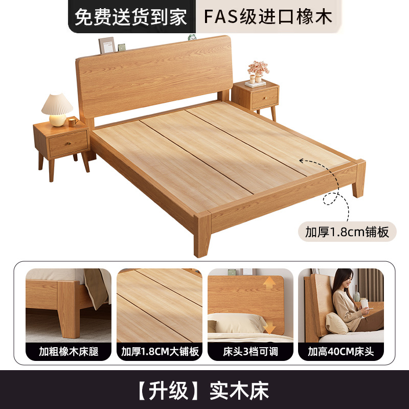 모든 원목 침대 더블 침대 마스터 침실 홈 침대 모던 심플 홈 1.8m 호두색 오크 침대 싱글 침대 프레임스토어 가기