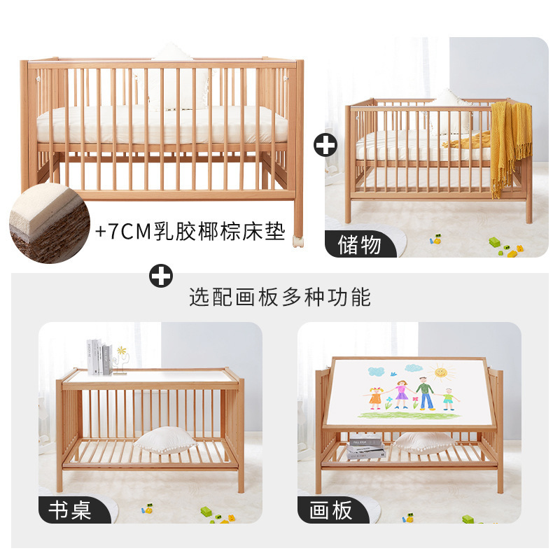 아기 너도밤나무 어린이용 접합 기능 아기 이동식 아기 침대 다기능 신생아 침대
