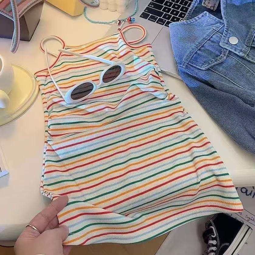 여자 서스펜더 드레스 여름 얇은 공주 어린이 여자 조끼 유행 레이디 스트라이프 롱 스커트 잠옷스토어 가기