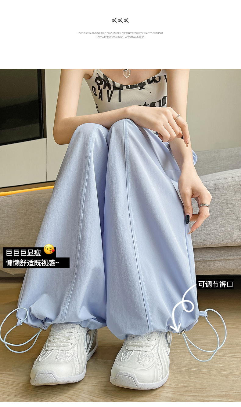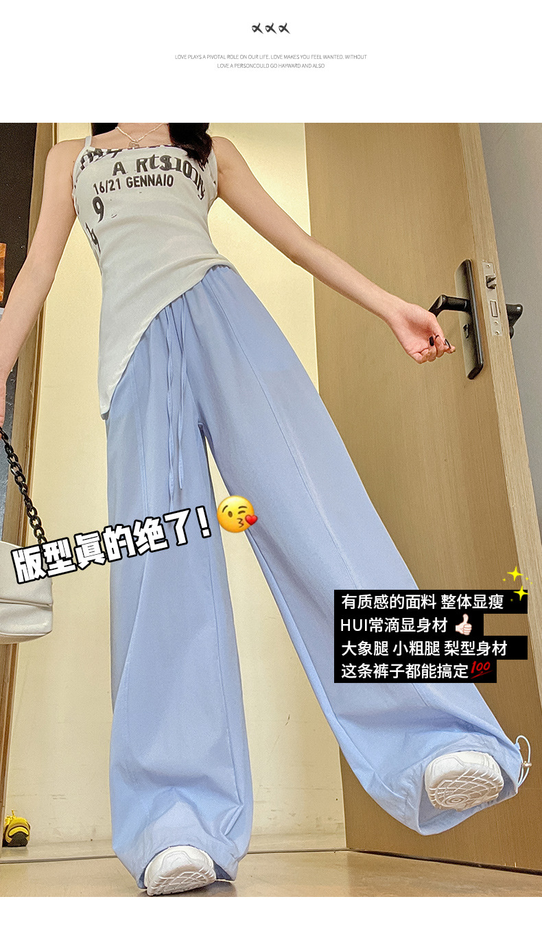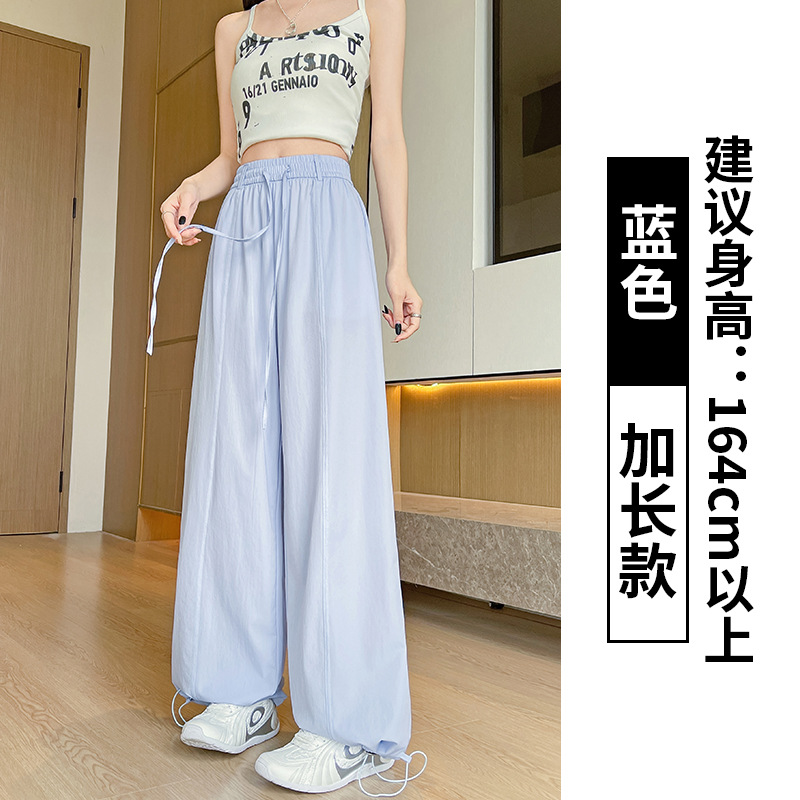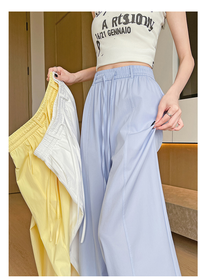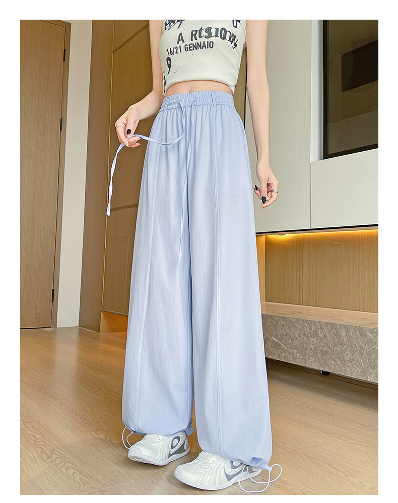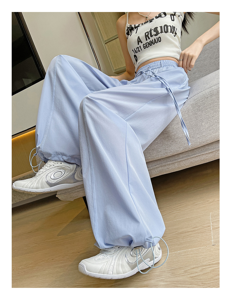 여성용 속건성 작업복 2025 여름 얇은 하이 웨이스트 루즈 와이드 레그 스트레이트 팬츠 캐주얼 스포츠 블루 하이킹 바지스토어 가기