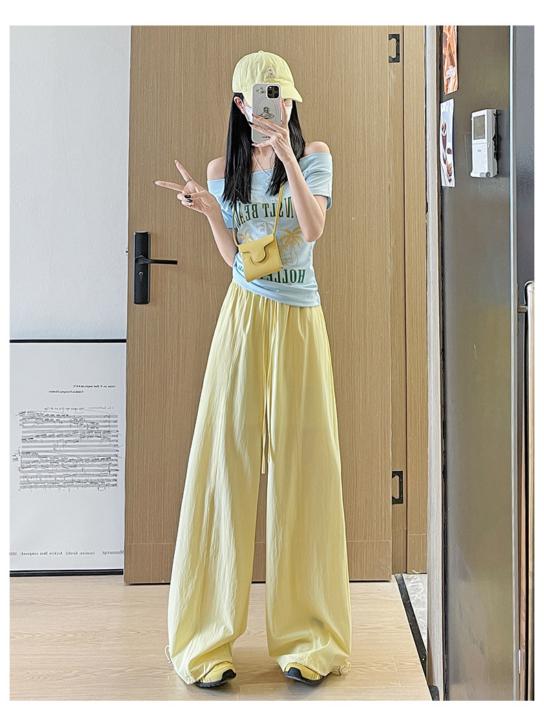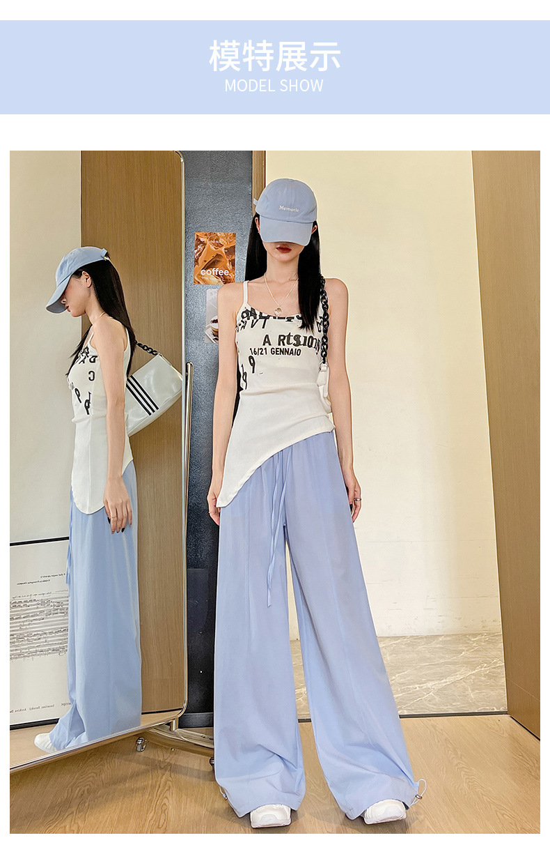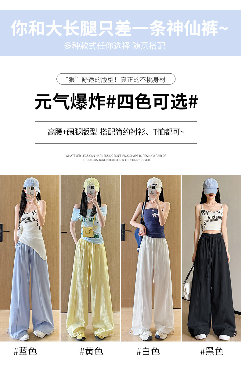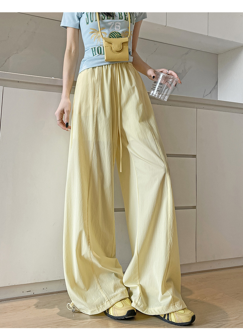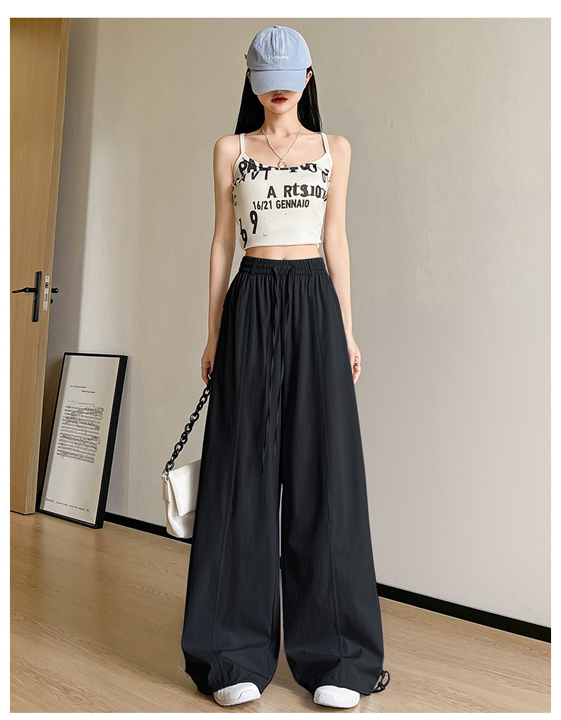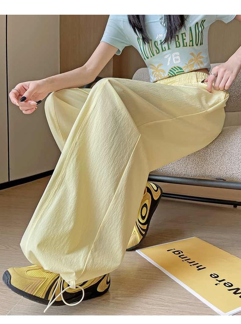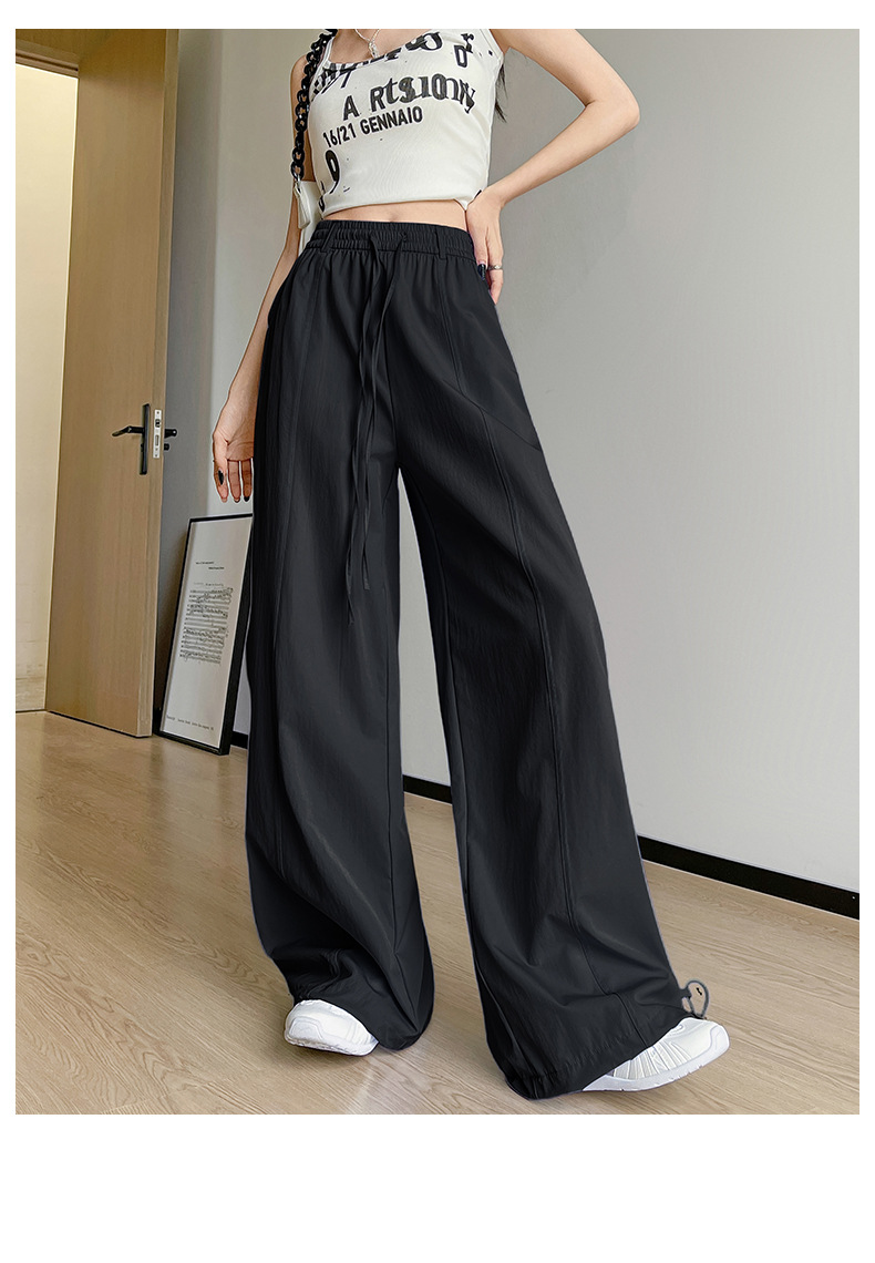 여성용 속건성 작업복 2025 여름 얇은 하이 웨이스트 루즈 와이드 레그 스트레이트 팬츠 캐주얼 스포츠 블루 하이킹 바지스토어 가기