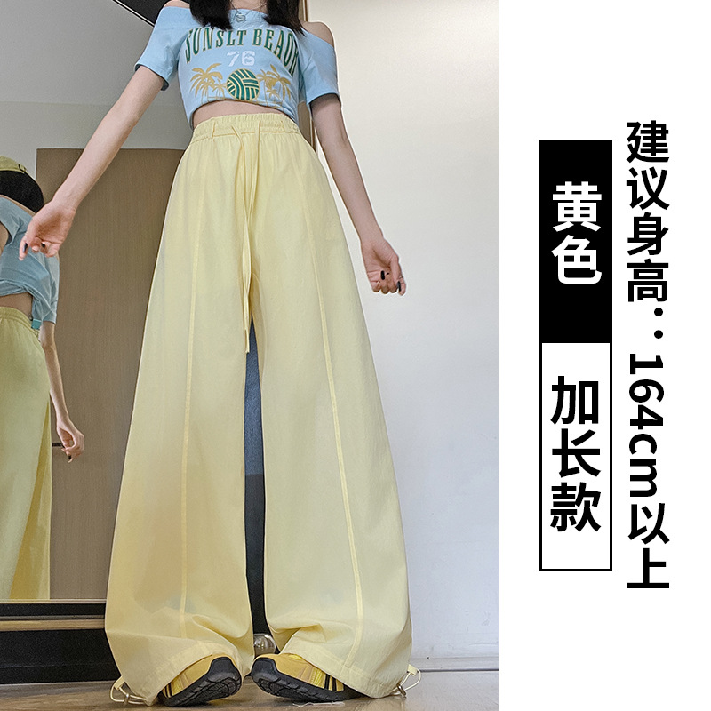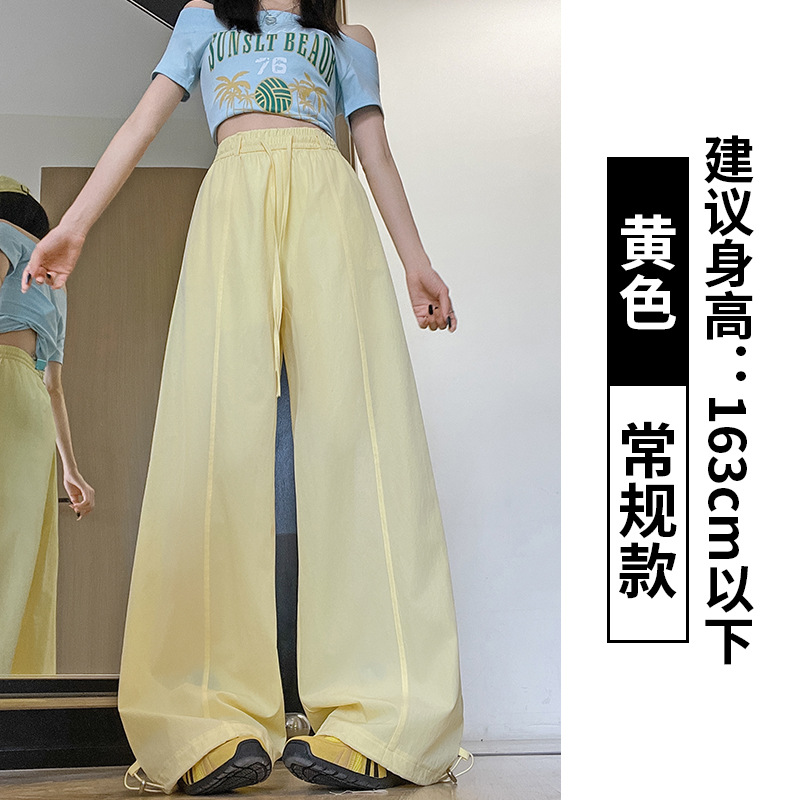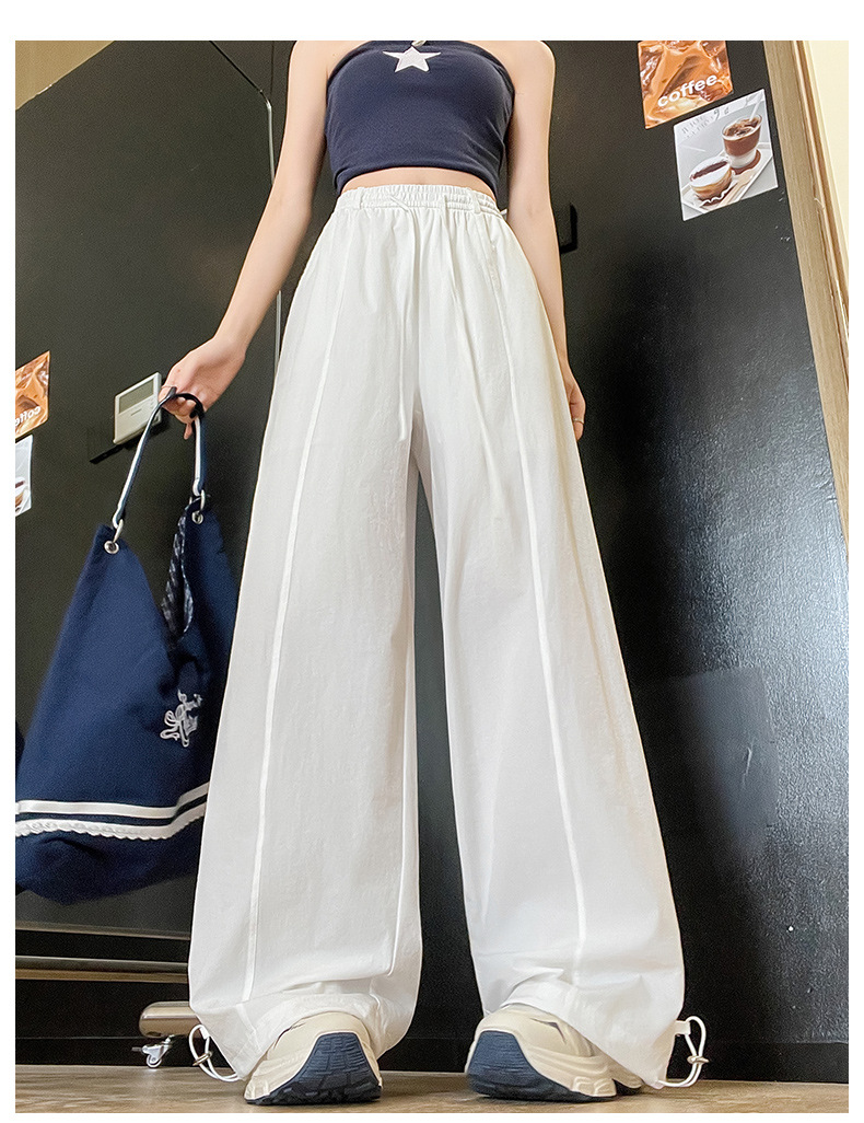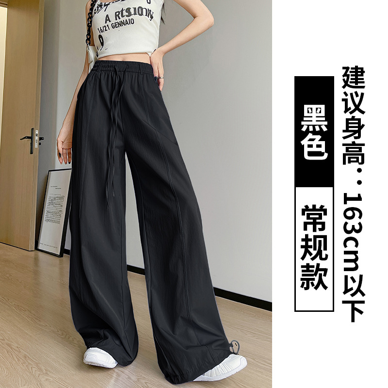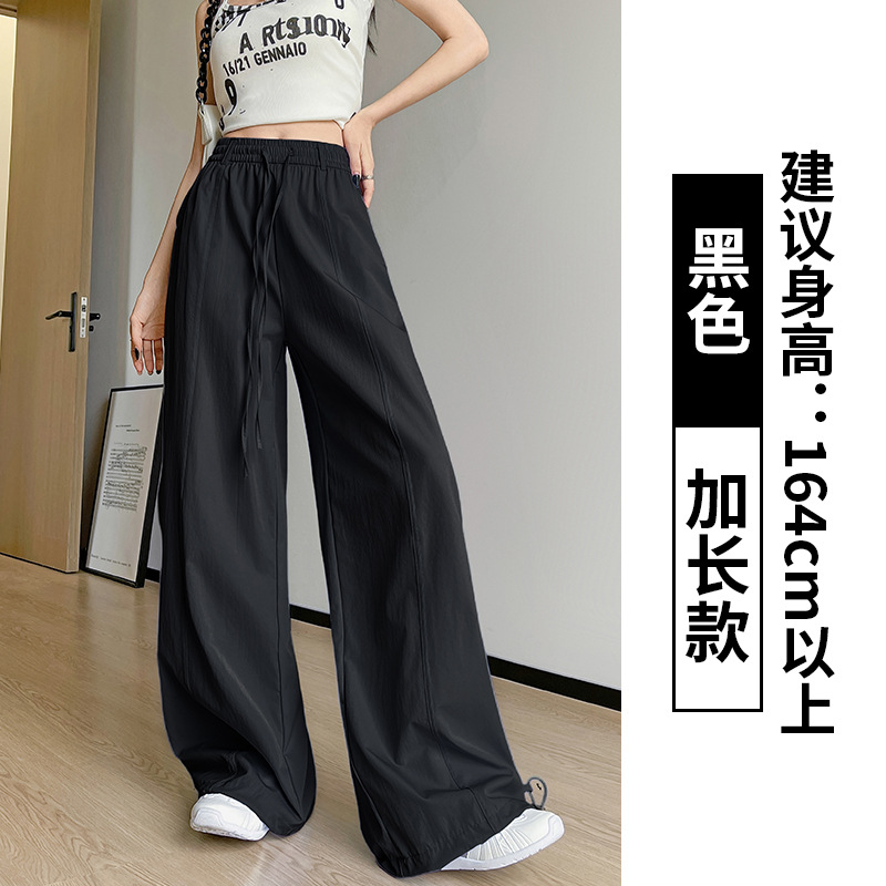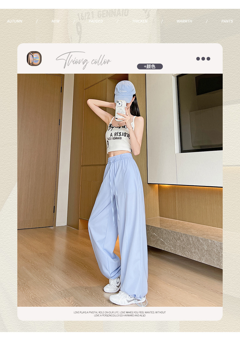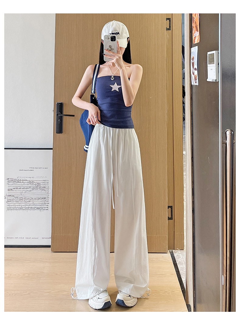 여성용 속건성 작업복 2025 여름 얇은 하이 웨이스트 루즈 와이드 레그 스트레이트 팬츠 캐주얼 스포츠 블루 하이킹 바지스토어 가기