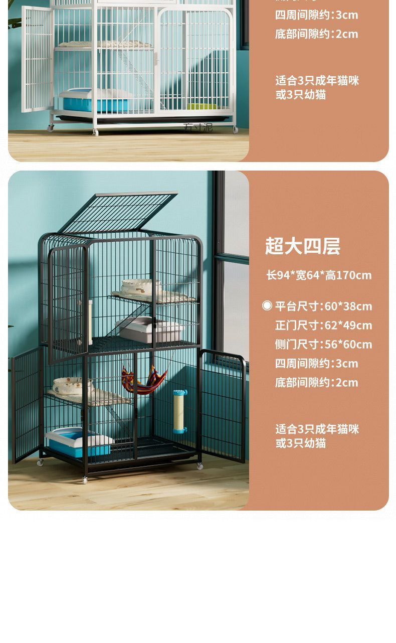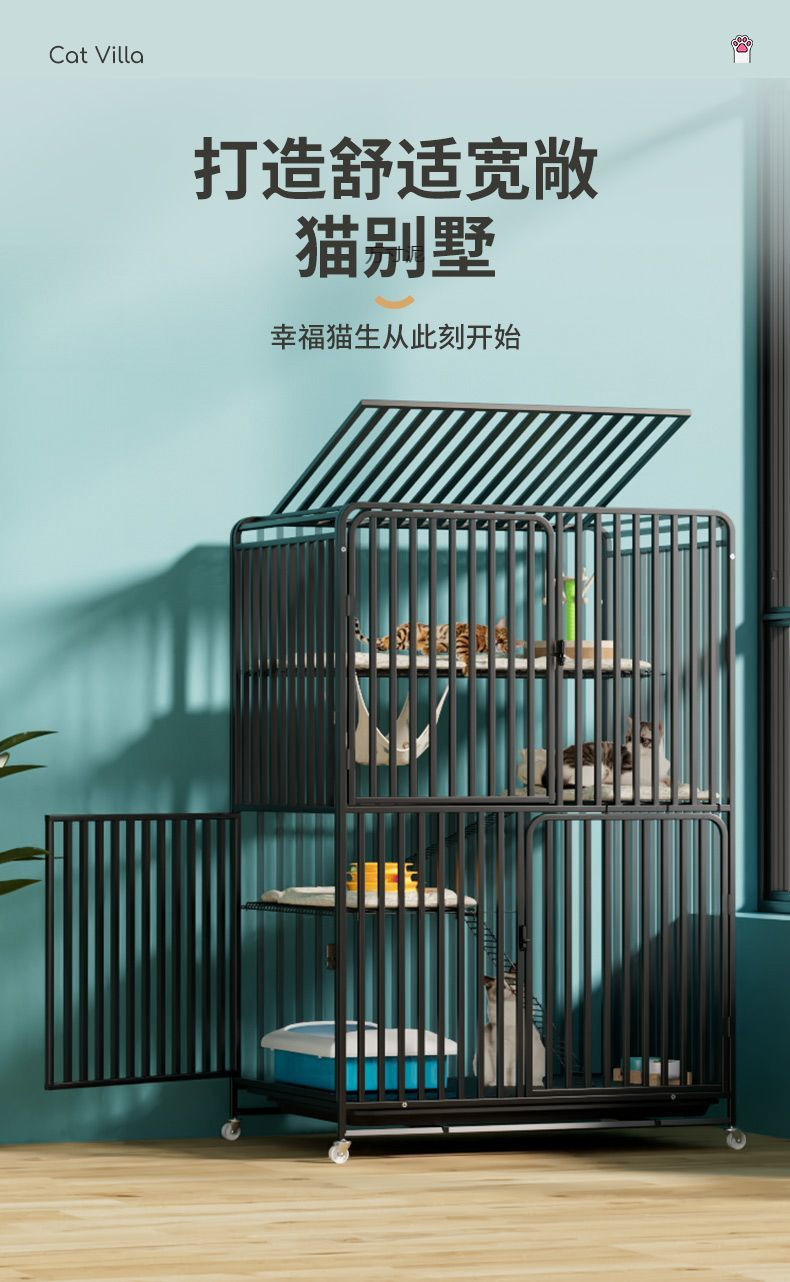 고양이 케이지 가정용 실내 초대형 공간 화장실 일체형 밀폐형 고양이 빌라 더블 3층 고양이 집 고양이 집