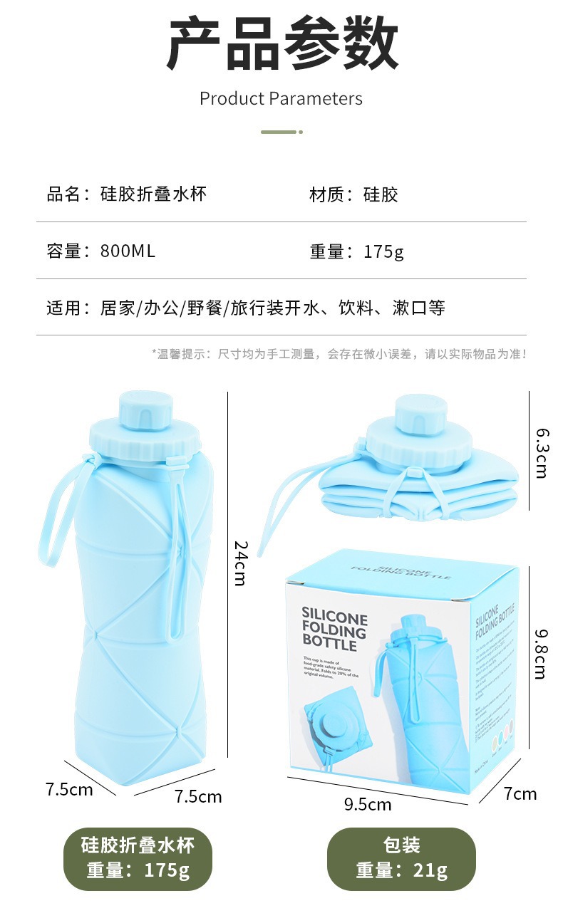 새로운 야외 휴대용 스포츠 워터 컵 800mL 실리콘 접는 컵 여행 동반자 안티 가을 주전자 재고 있음 도매