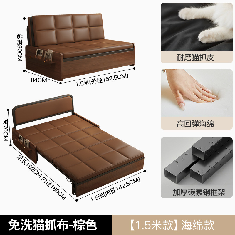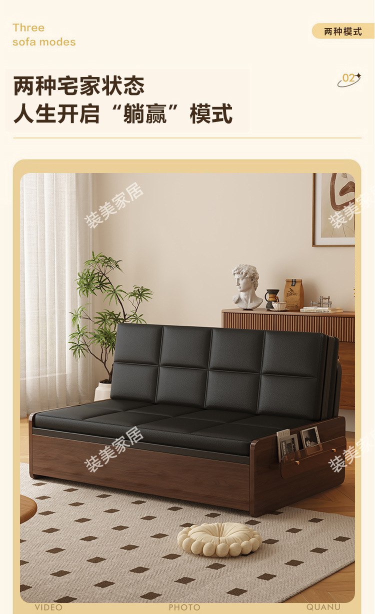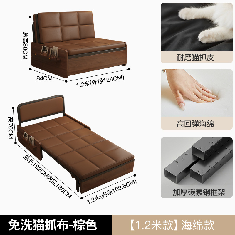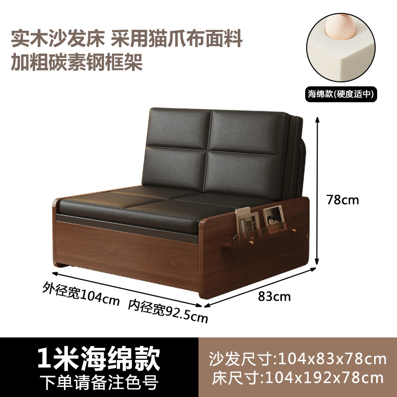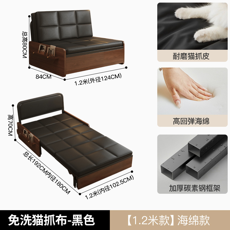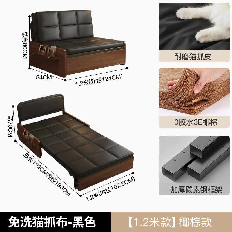 단단한 나무 접이식 소파 베드, 이중 목적, 가정용 소형 단일 개폐식 침대, 다기능 투인원 풀아웃 침대