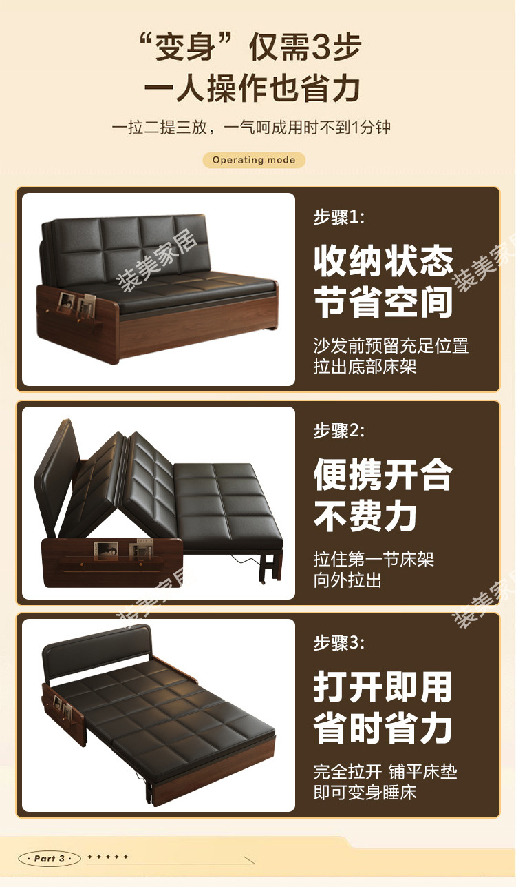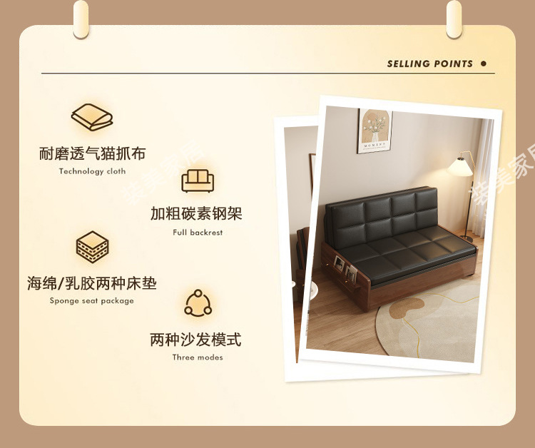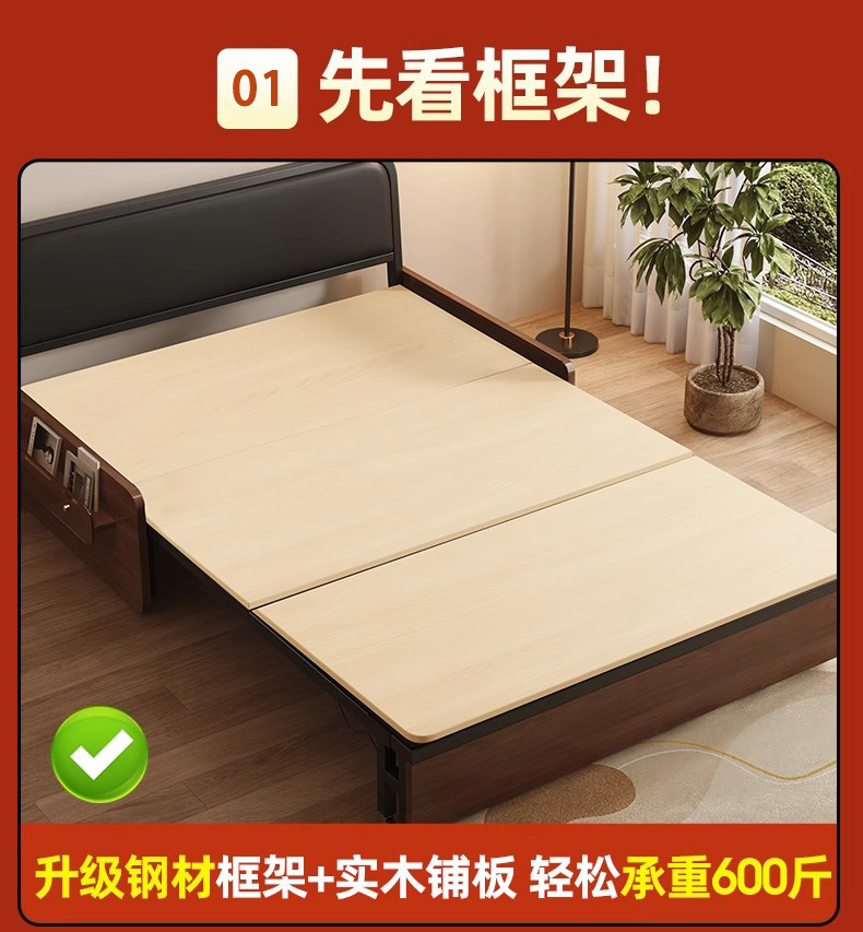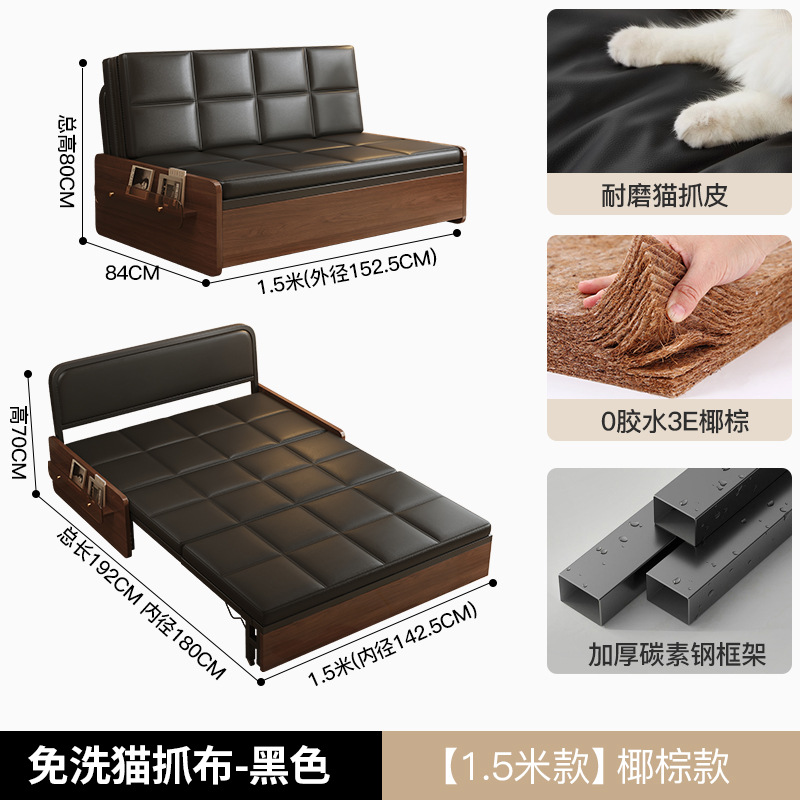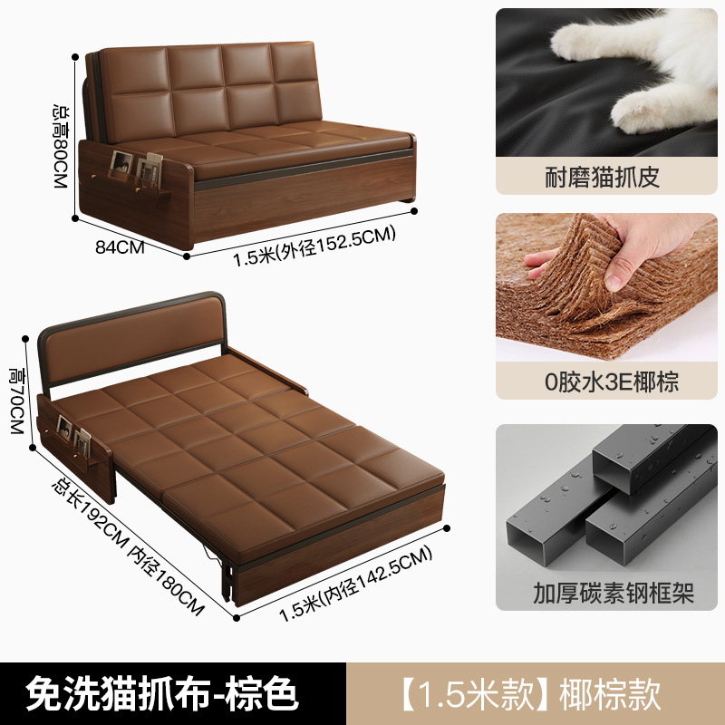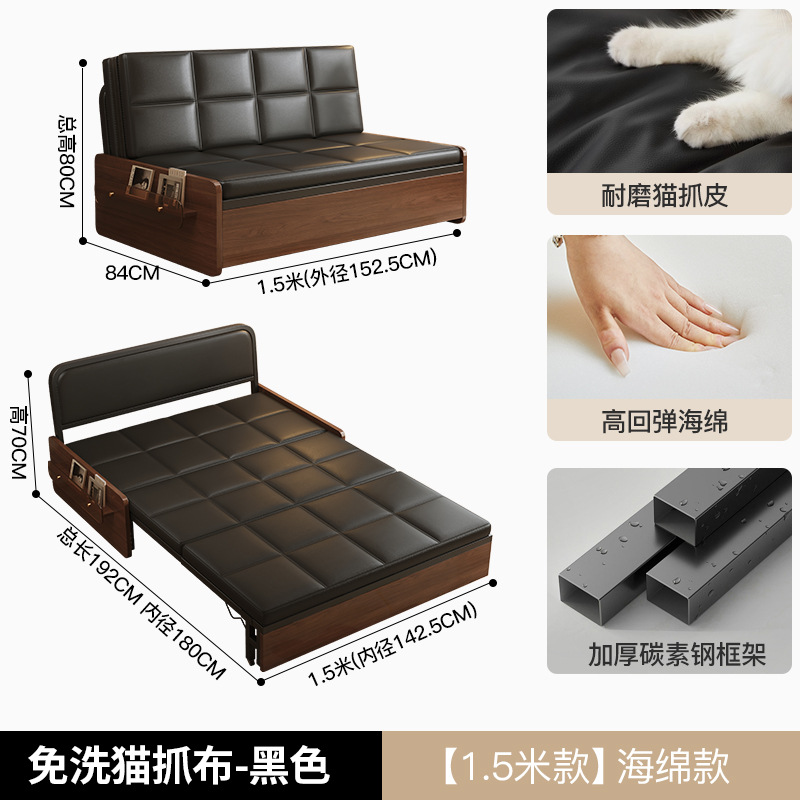 단단한 나무 접이식 소파 베드, 이중 목적, 가정용 소형 단일 개폐식 침대, 다기능 투인원 풀아웃 침대