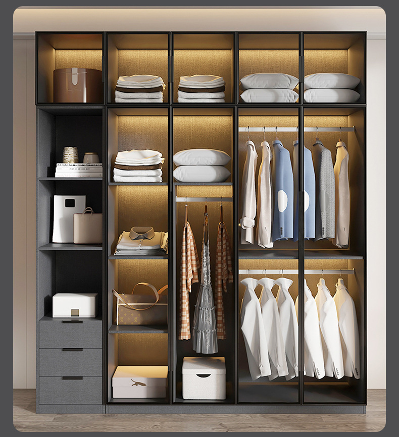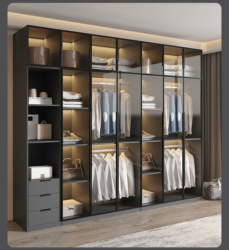 옷장 홈 침실 조명 럭셔리 스토리지 2 도어 캐비닛 유리 작은 아파트 현대 미니멀리스트 가방 설치