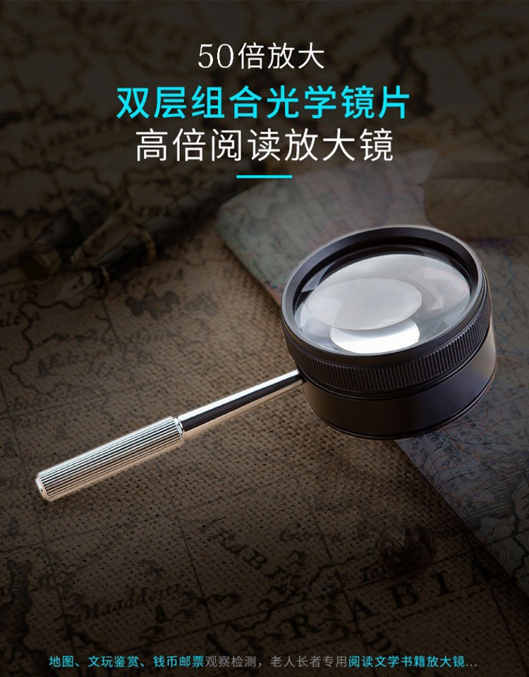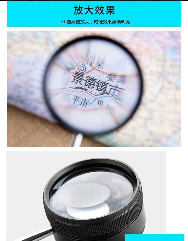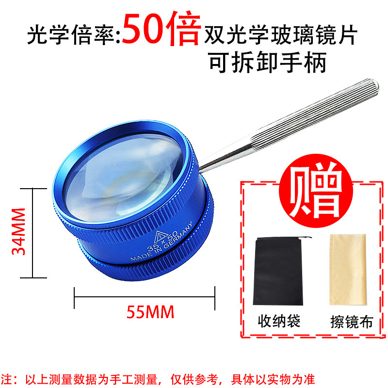 독일 공예 고배율 돋보기 HD 50배 중년 및 노년층 휴대용 휴대용 독서 및 문화 장난감 수리 인스턴트 페니