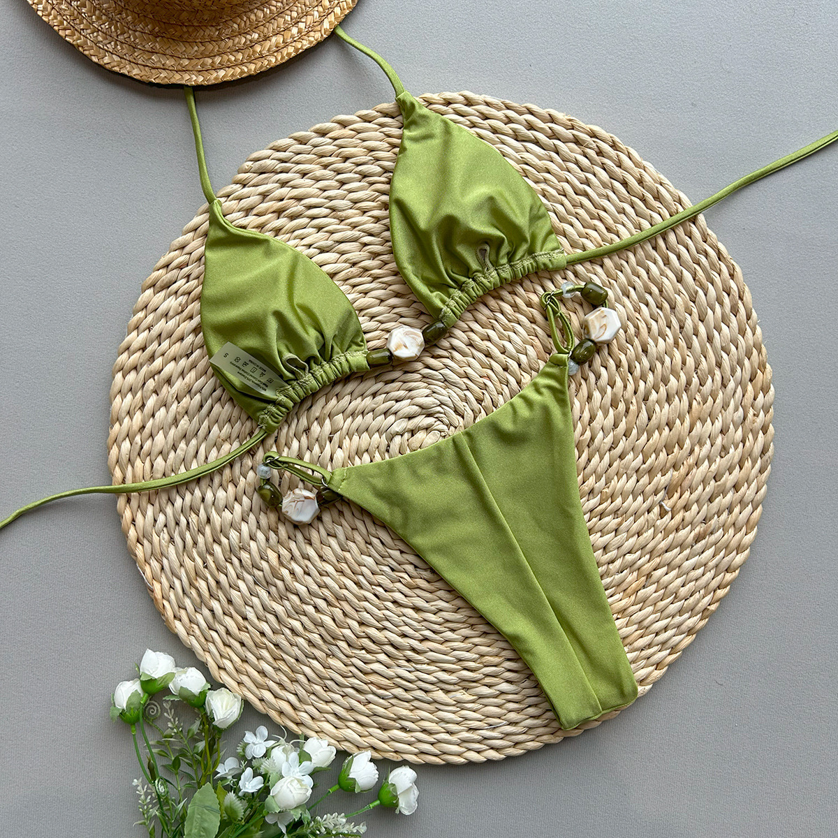 2025 새로운 비키니 섹시한 유럽과 미국의 비키니 솔리드 컬러 크로스 바운드 스플릿 여성 수영복 수영복 여성스토어 가기