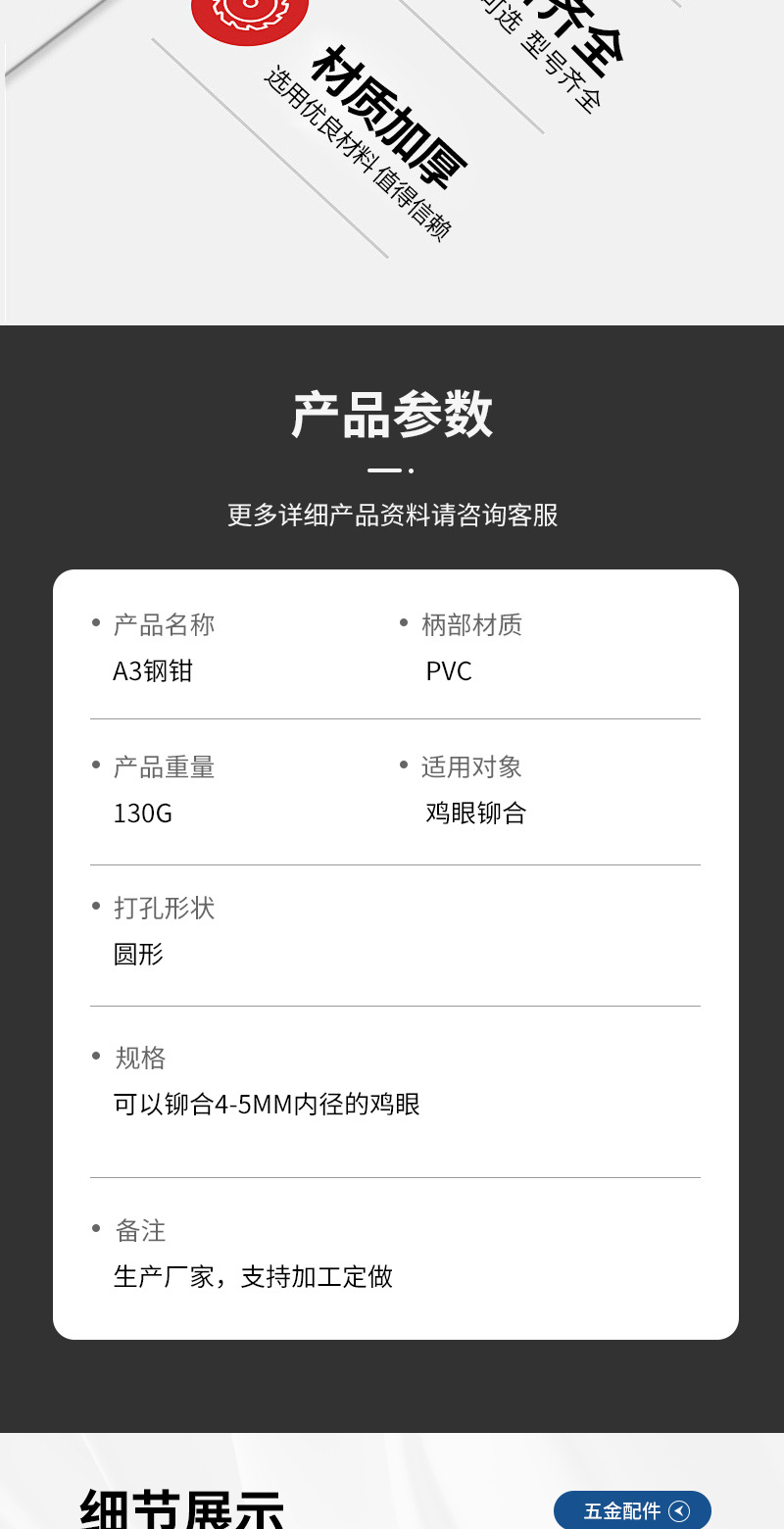 다기능 일반 클램프 제조업체 라운드 노즈 A3 스틸 클램프 의류 벨트 신발 산업용 PVC 천공 클램프스토어 가기