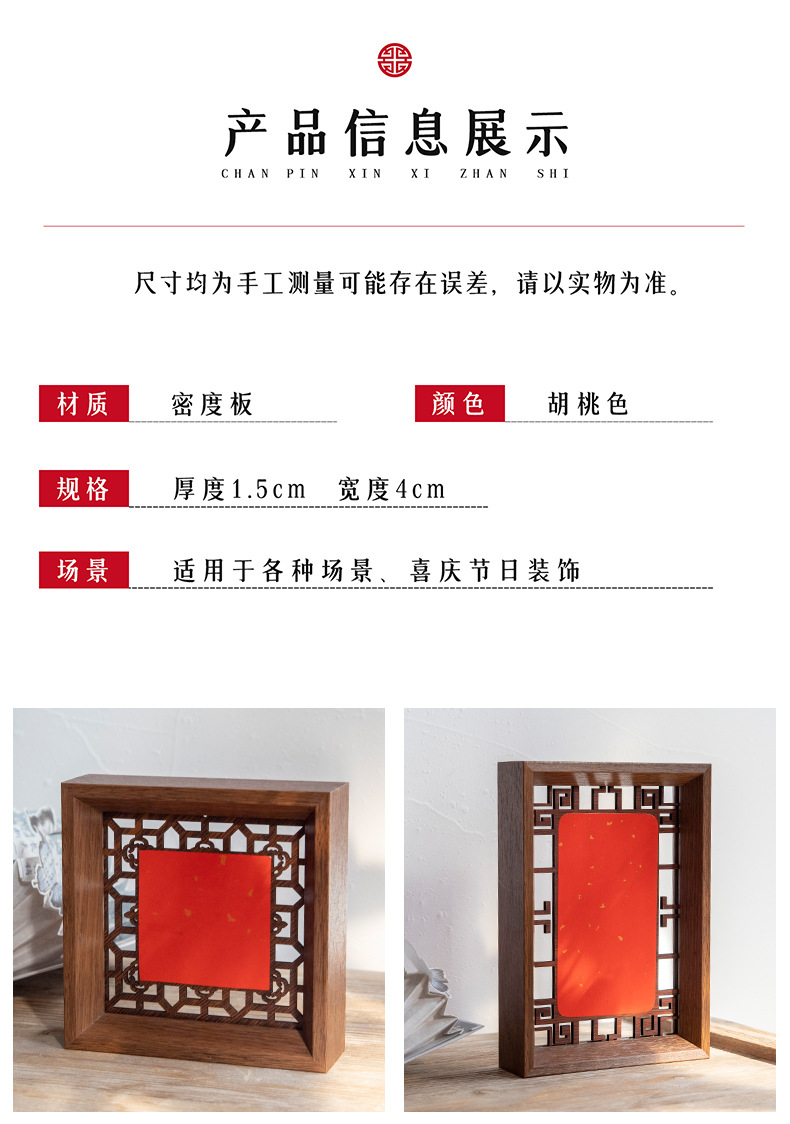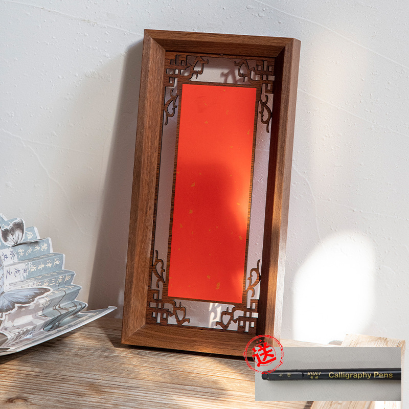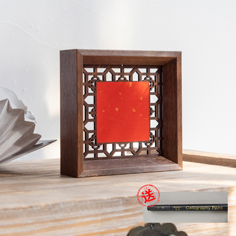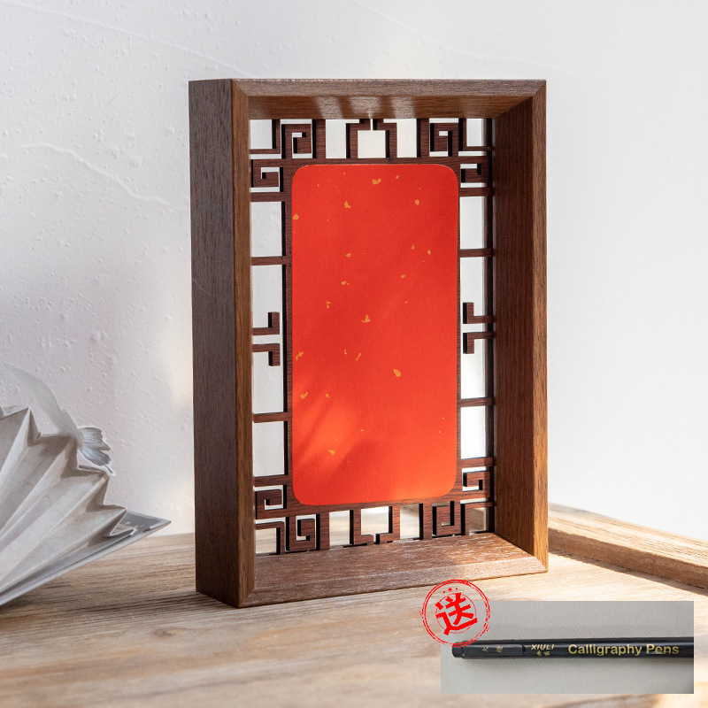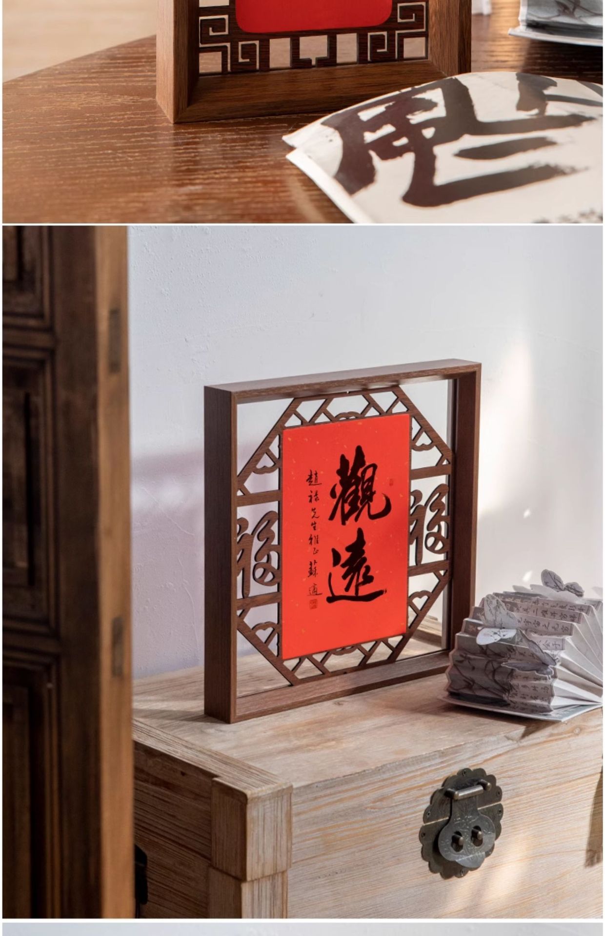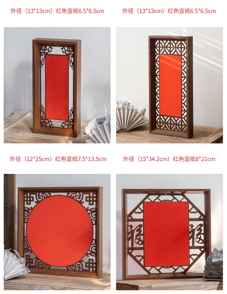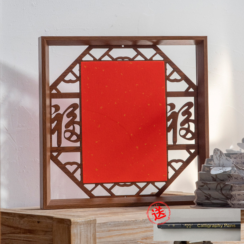 나무 중국 스타일 중공 손으로 쓴 빈 서예 사진 프레임 장식 빨간색 금박 종이 양면 입체 그림 장식품 테이블