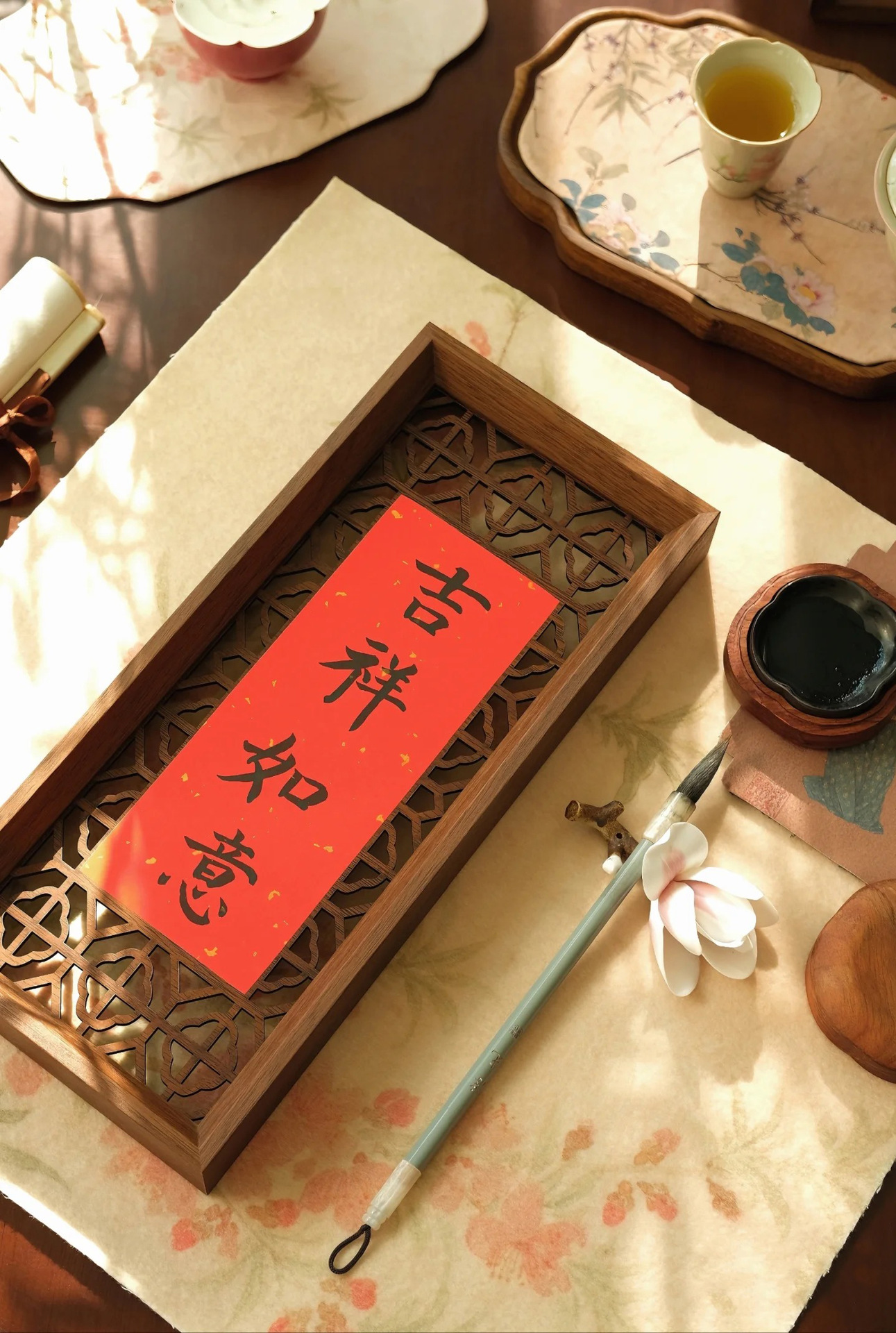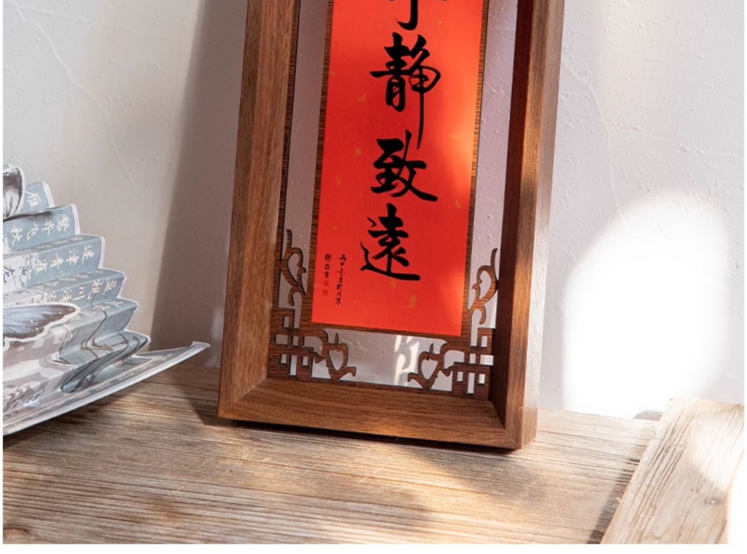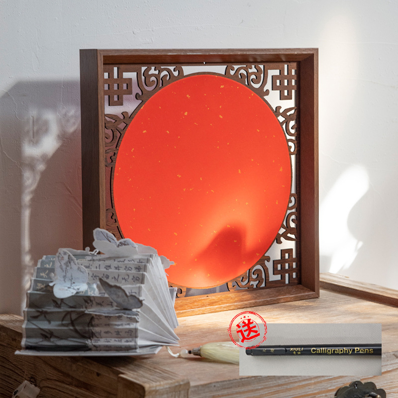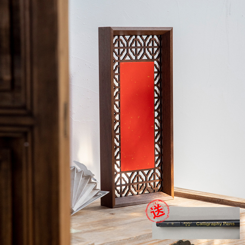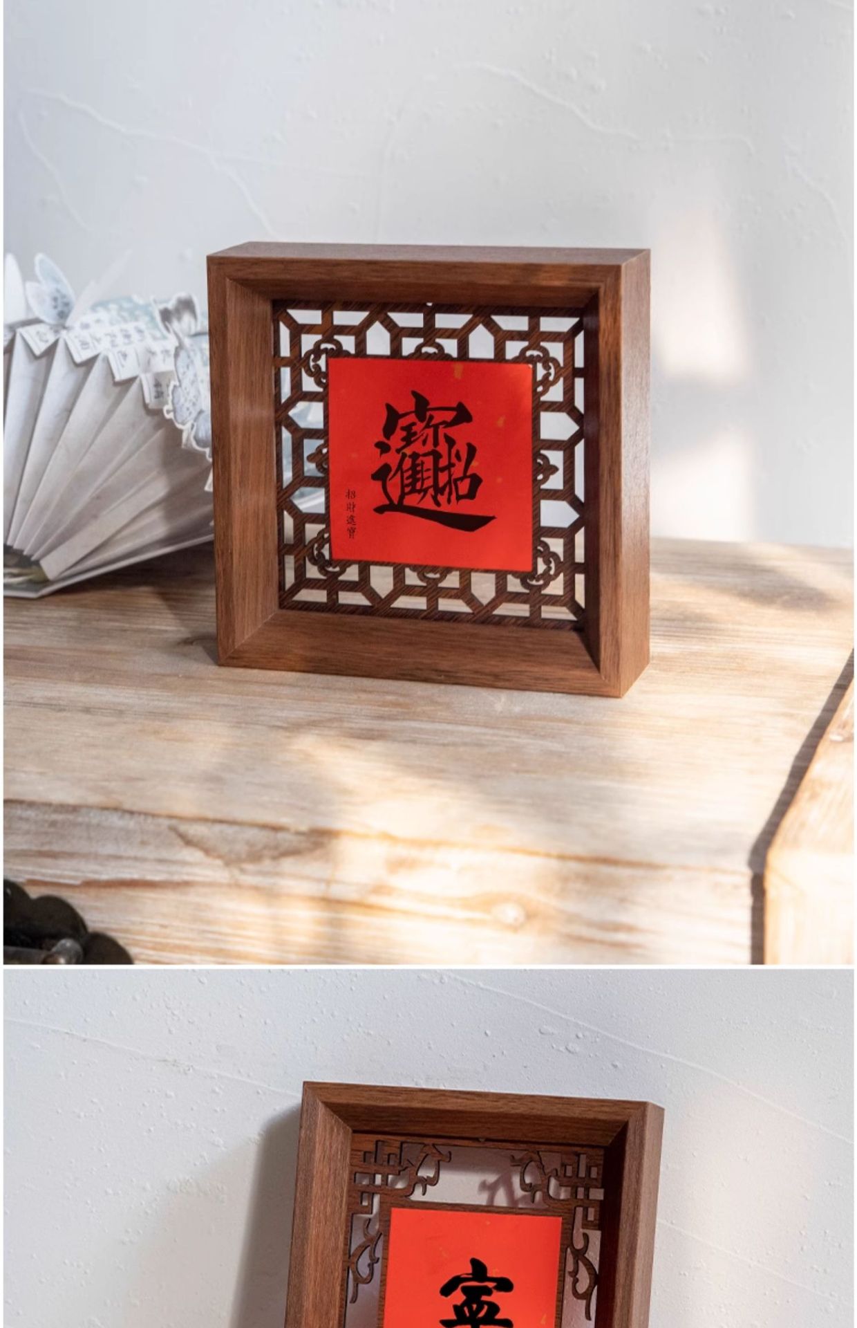 나무 중국 스타일 중공 손으로 쓴 빈 서예 사진 프레임 장식 빨간색 금박 종이 양면 입체 그림 장식품 테이블