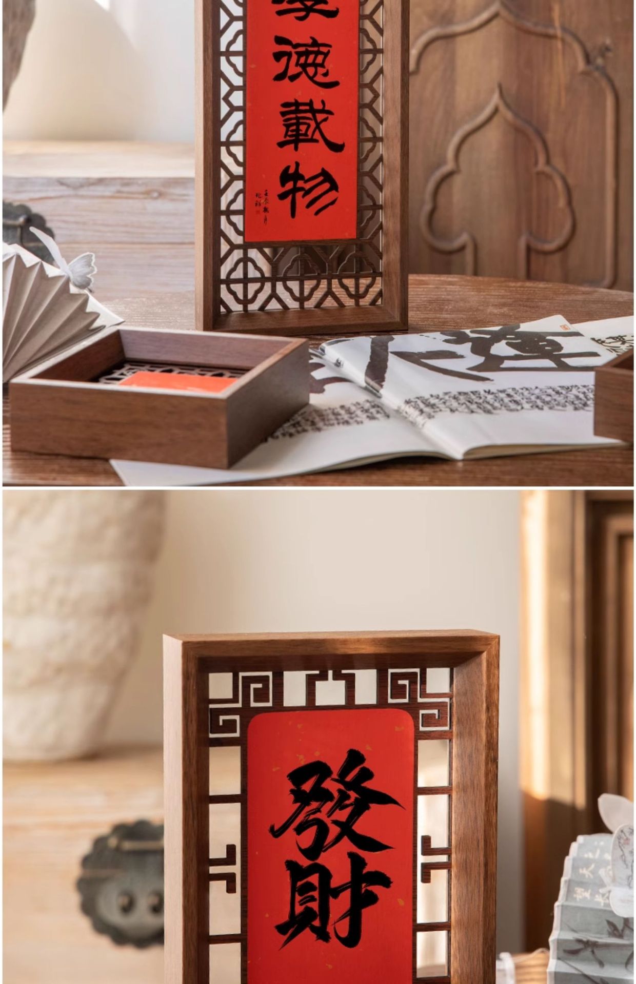 나무 중국 스타일 중공 손으로 쓴 빈 서예 사진 프레임 장식 빨간색 금박 종이 양면 입체 그림 장식품 테이블스토어 가기