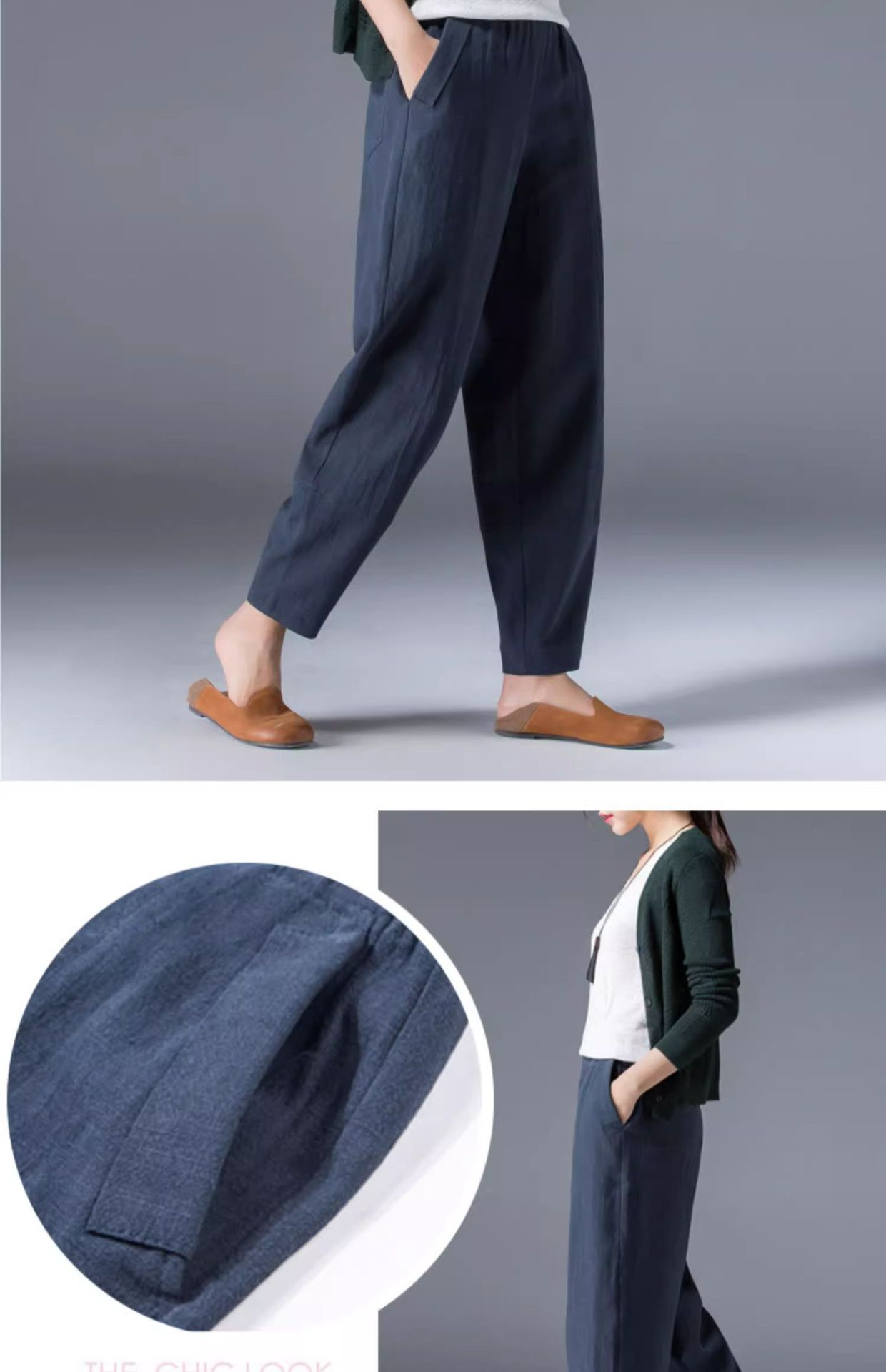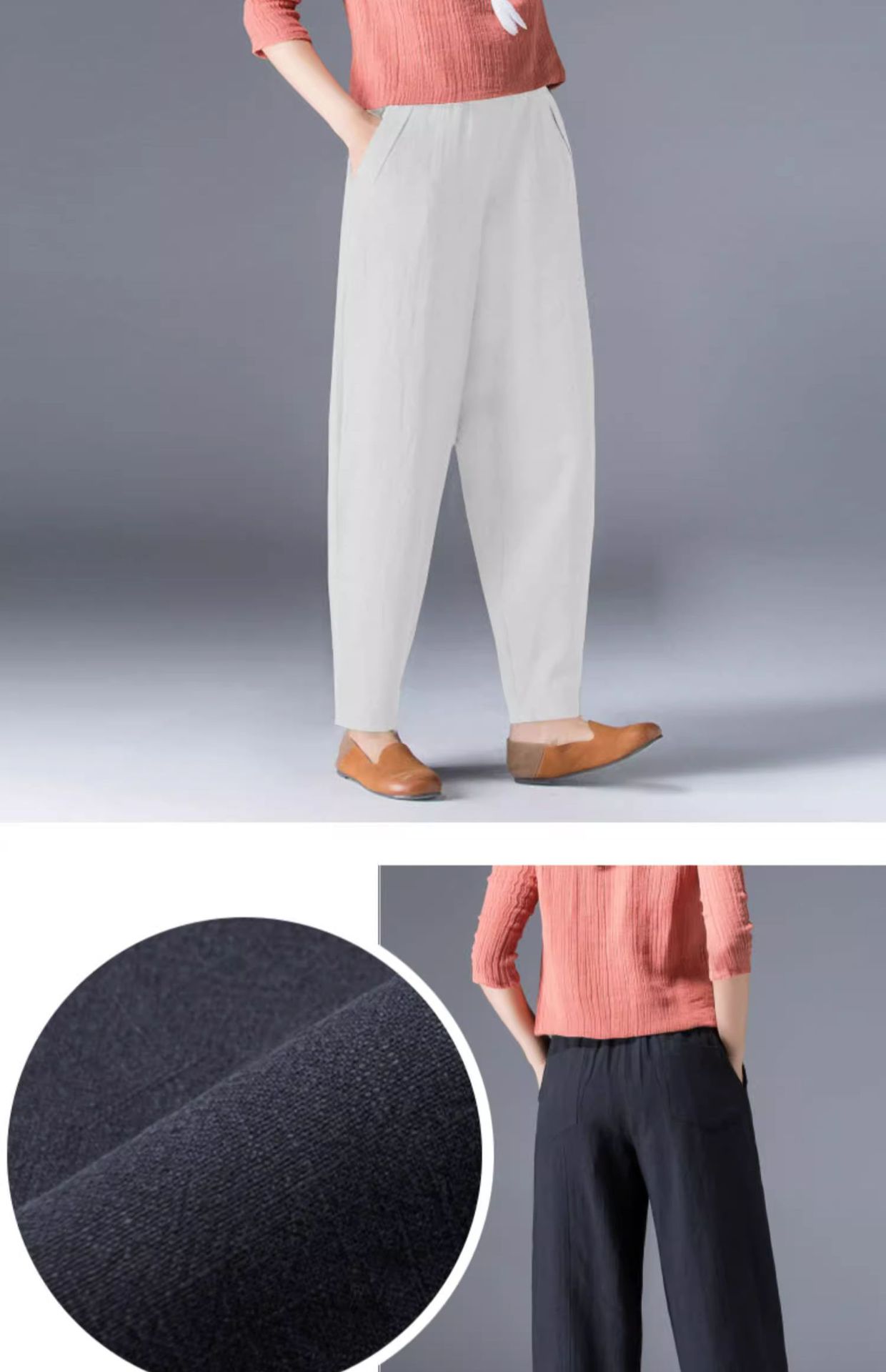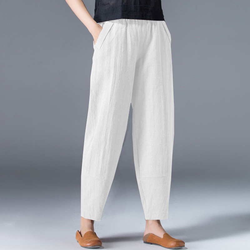 플러스 사이즈 여성 의류 뚱뚱한 mm 여름 얇은면 및 린넨 바지 새로운 린넨 여성 바지 중년 및 노인 어머니 바지 여름 옷