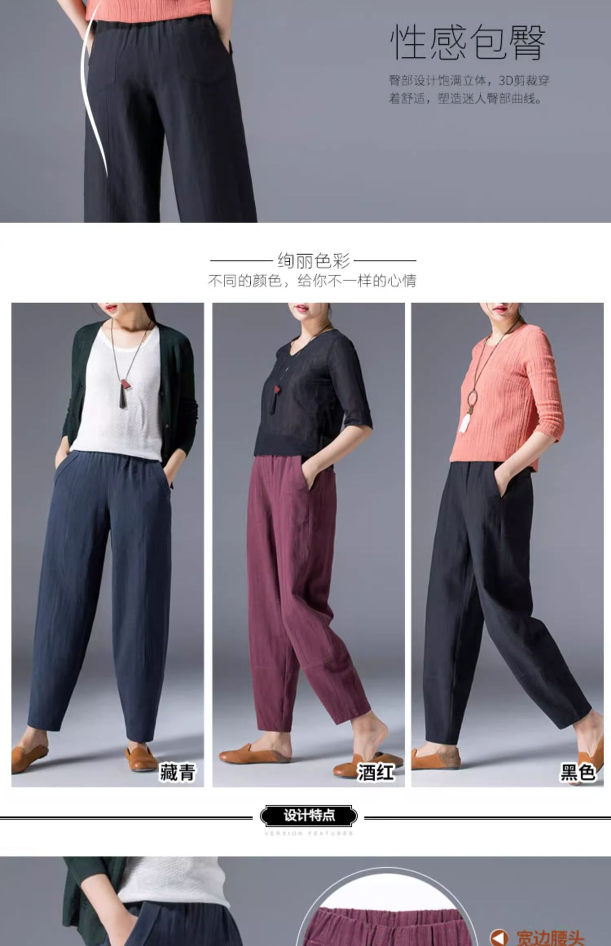 플러스 사이즈 여성 의류 뚱뚱한 mm 여름 얇은면 및 린넨 바지 새로운 린넨 여성 바지 중년 및 노인 어머니 바지 여름 옷스토어 가기