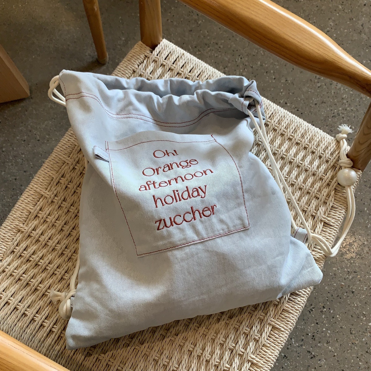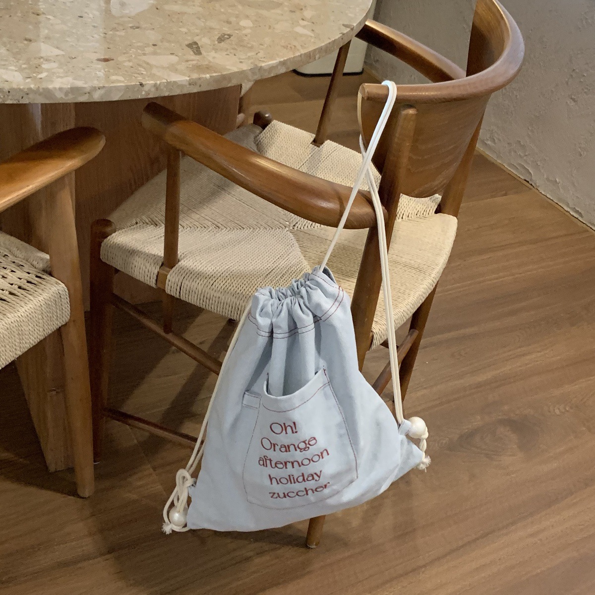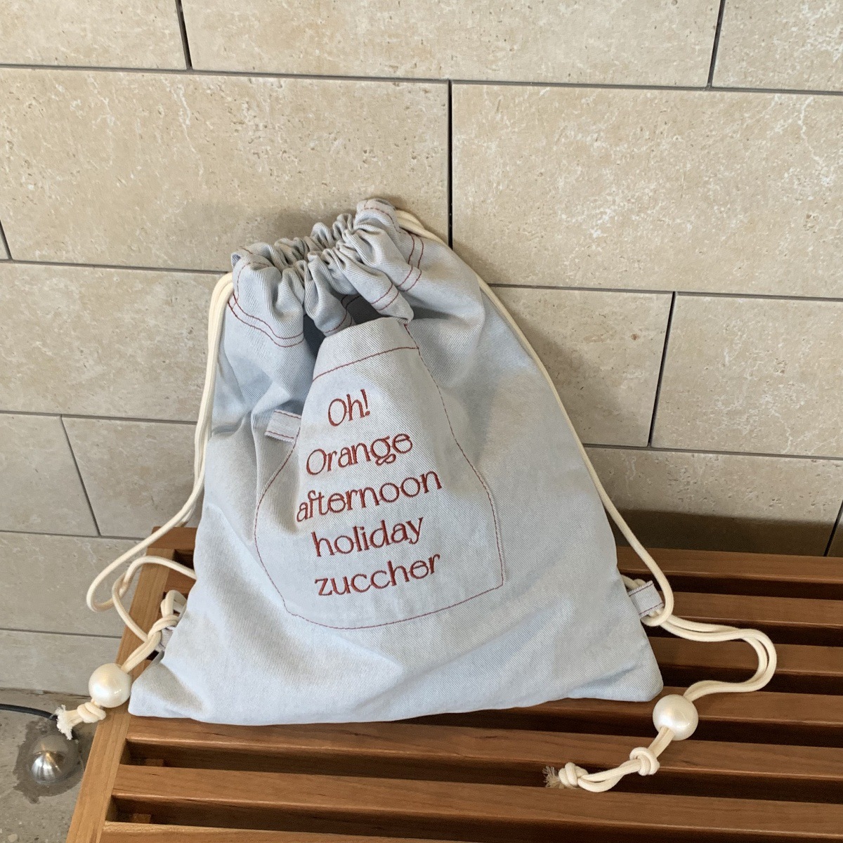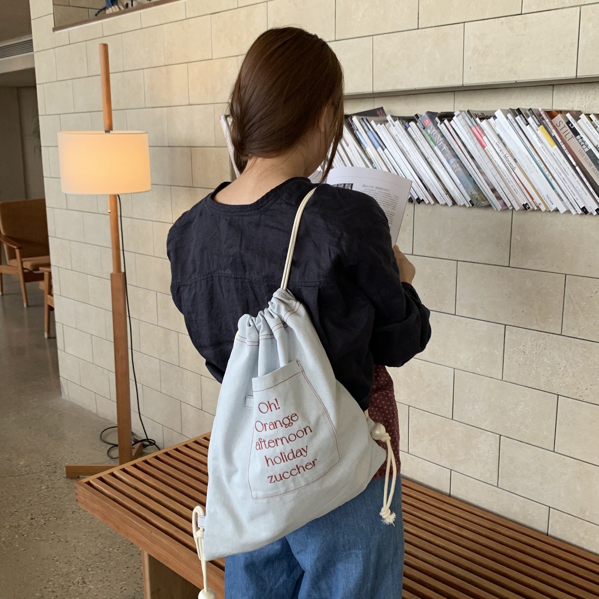 ooahz 홈메이드 홀리데이 프로스팅~한국 니치 데님 자수 드로스트링 백팩 레이지 클래스 백팩