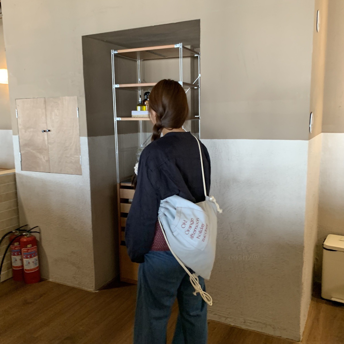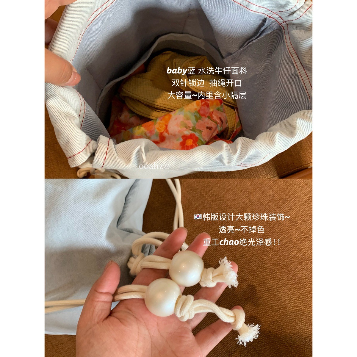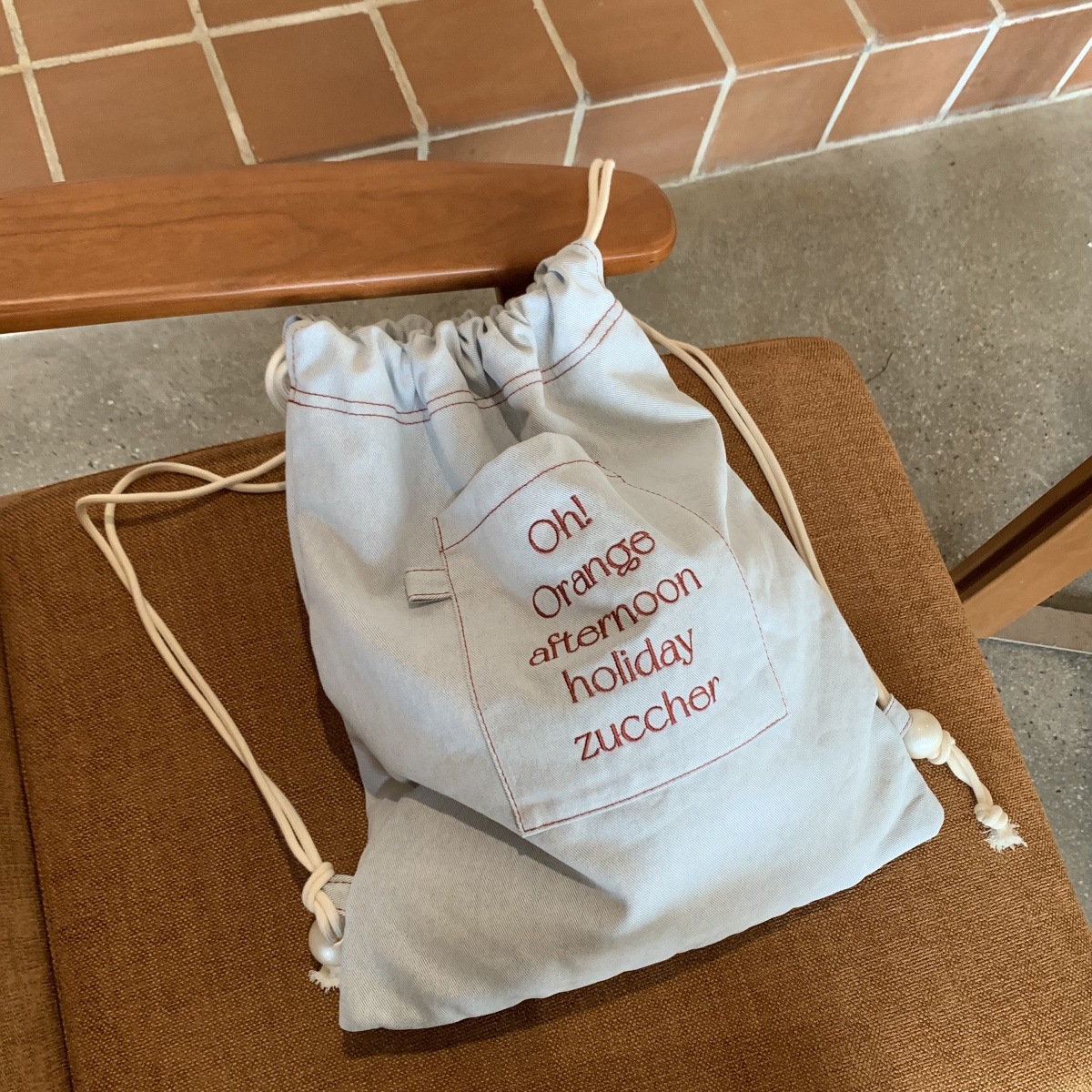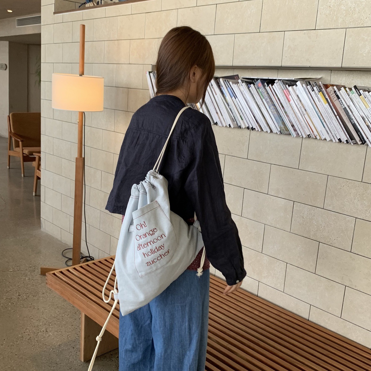 ooahz 홈메이드 홀리데이 프로스팅~한국 니치 데님 자수 드로스트링 백팩 레이지 클래스 백팩
