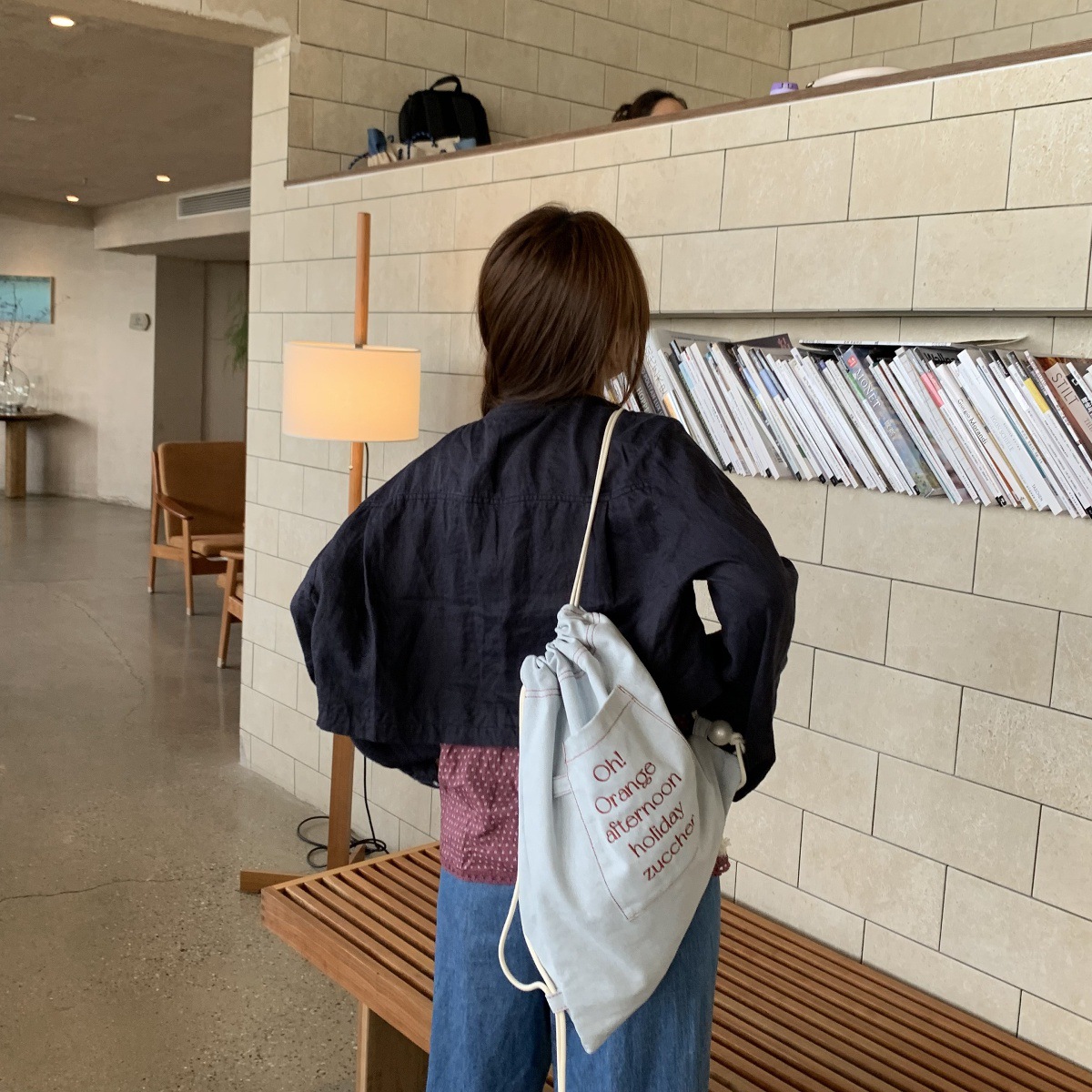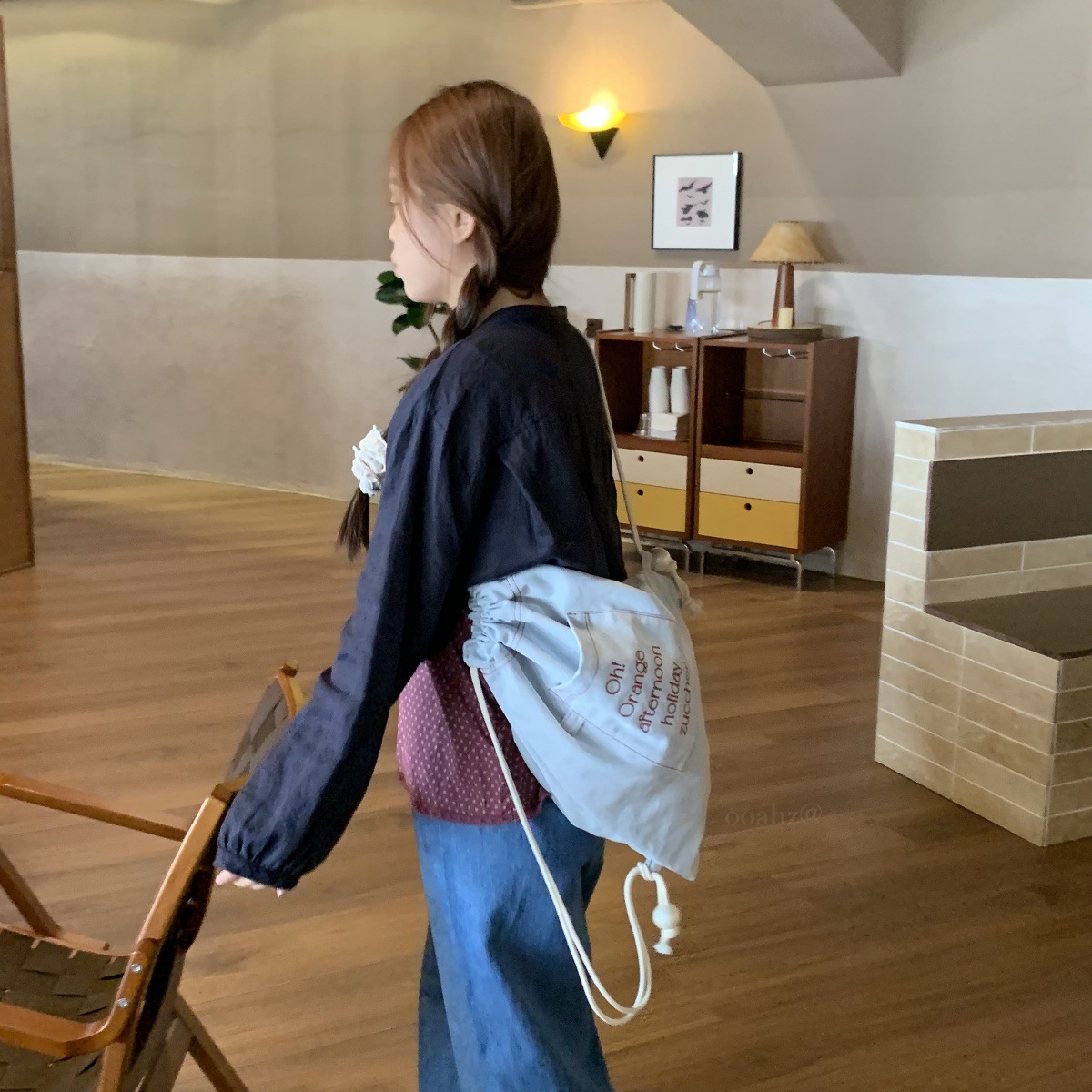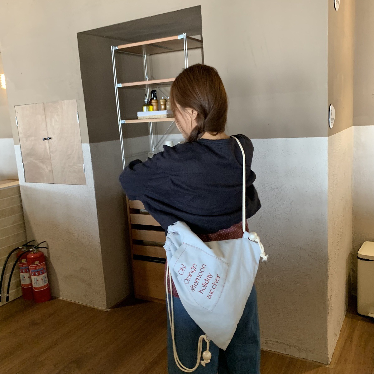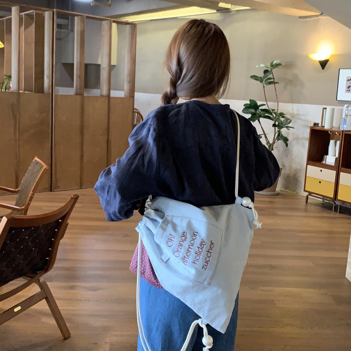 ooahz 홈메이드 홀리데이 프로스팅~한국 니치 데님 자수 드로스트링 백팩 레이지 클래스 백팩