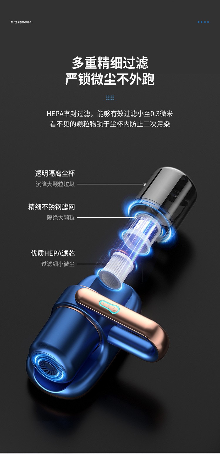 가정용 무선 진공 청소기 충전식 UV 살균 및 진드기 제거 유물 기계 먼지 상자 휴대용 진드기 제거제