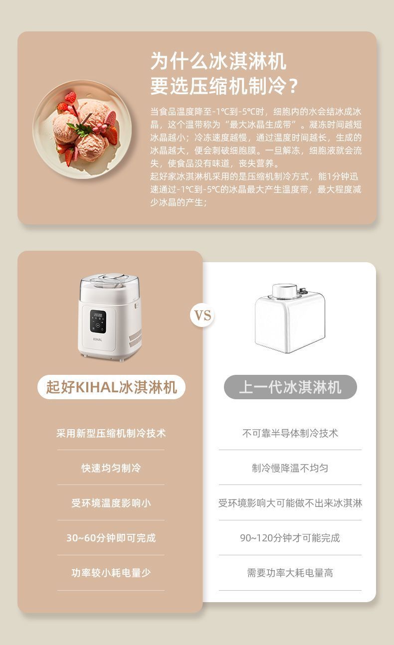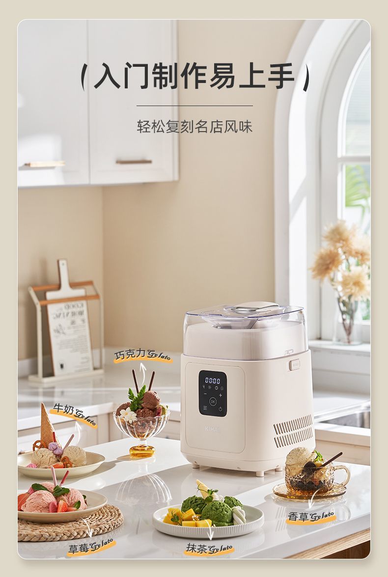 KIHAL 아이스크림 기계 가정용 소형 완전 자동 압축기 냉동 이탈리아 젤라토 아이스크림 기계스토어 가기