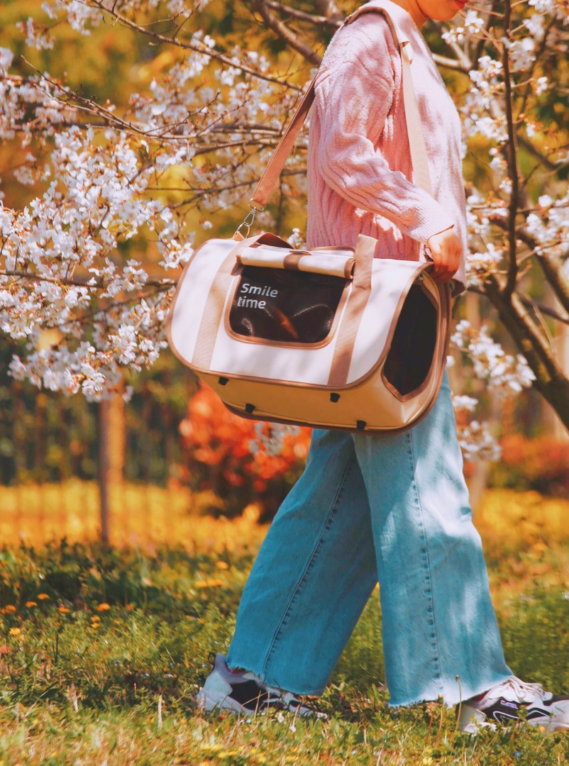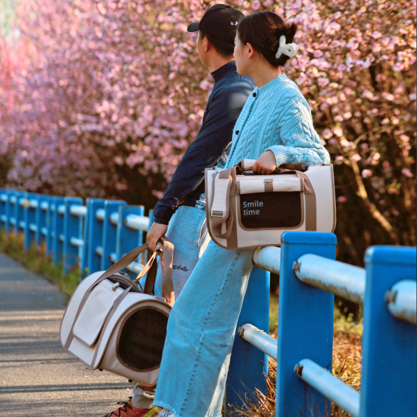 SmileTime 고양이 가방, 고급 외출 상자, 휴대용 가방, 통기성 휴대용 대용량 어깨 크로스 바디 개 가방, 항공 케이스