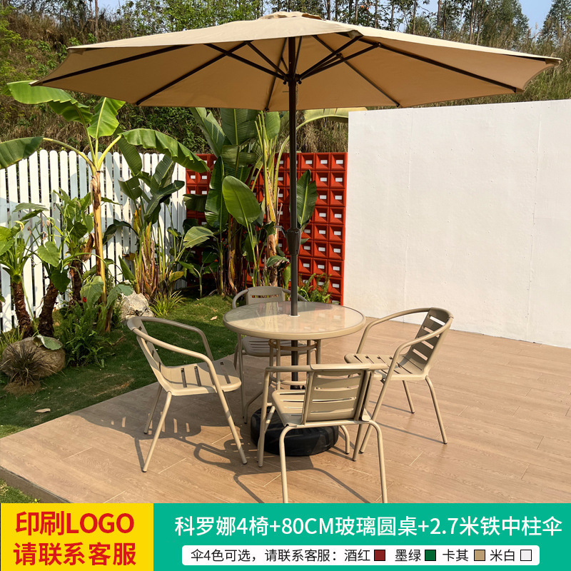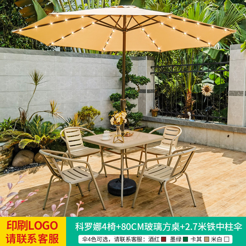 • 테이블, 의자, 램프, 우산 조합 [코로나 4인용 의자 + 70CM 탄소강 원형 테이블] [럭셔리 모델 5]